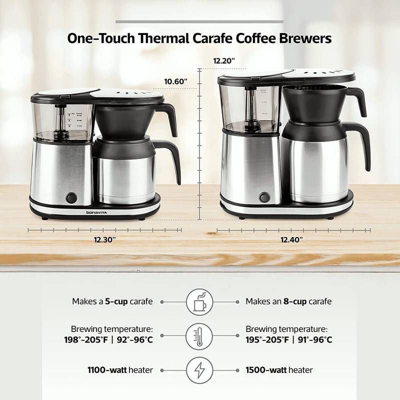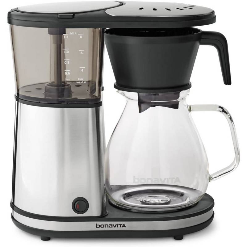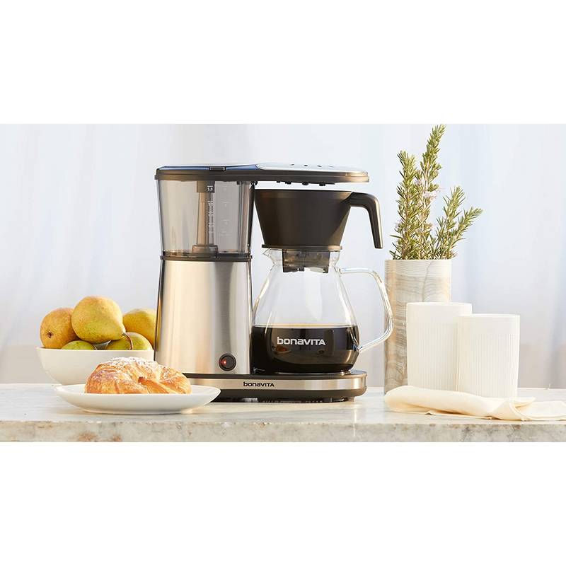 Bonavita 8-Cup One-Touch Coffee Maker Featuring Glass Carafe and Warming Plate, 12.6 x 6.8 x 12.2 inches, chrome