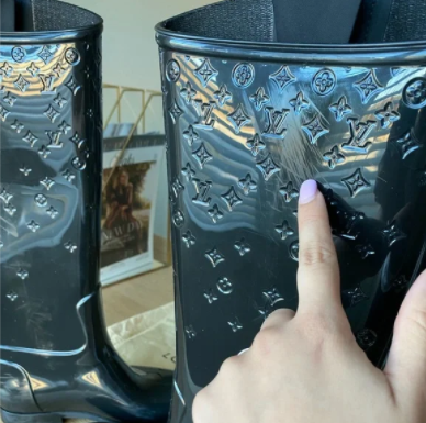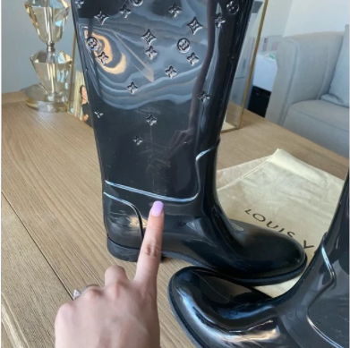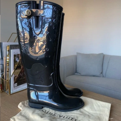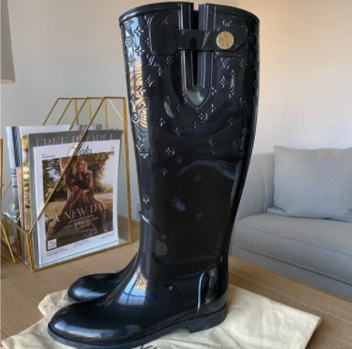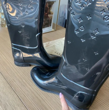 LOUIS VUITTON Rubber Embossed Monogram Drops High Boots 36 Black