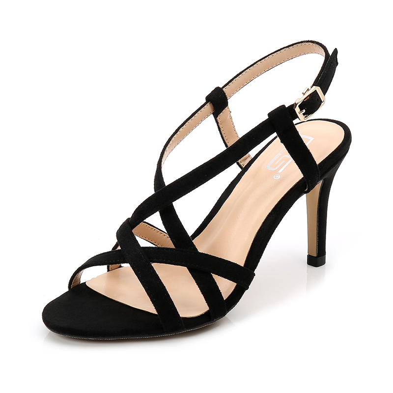European and American fashion suede high heel heel sandals women's hollow back half with versatile shoes 8cm