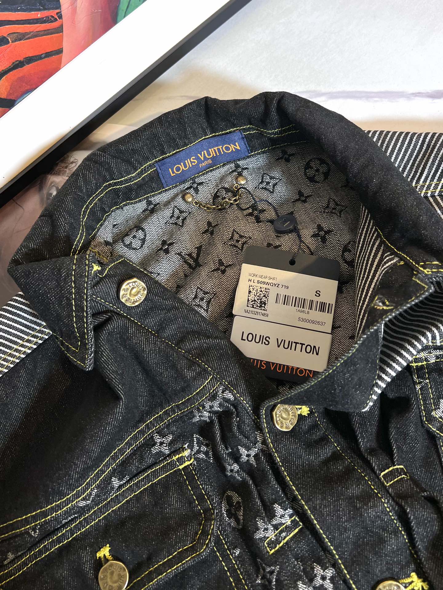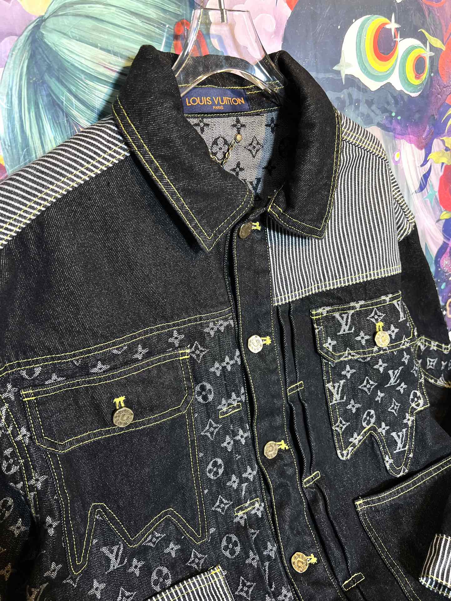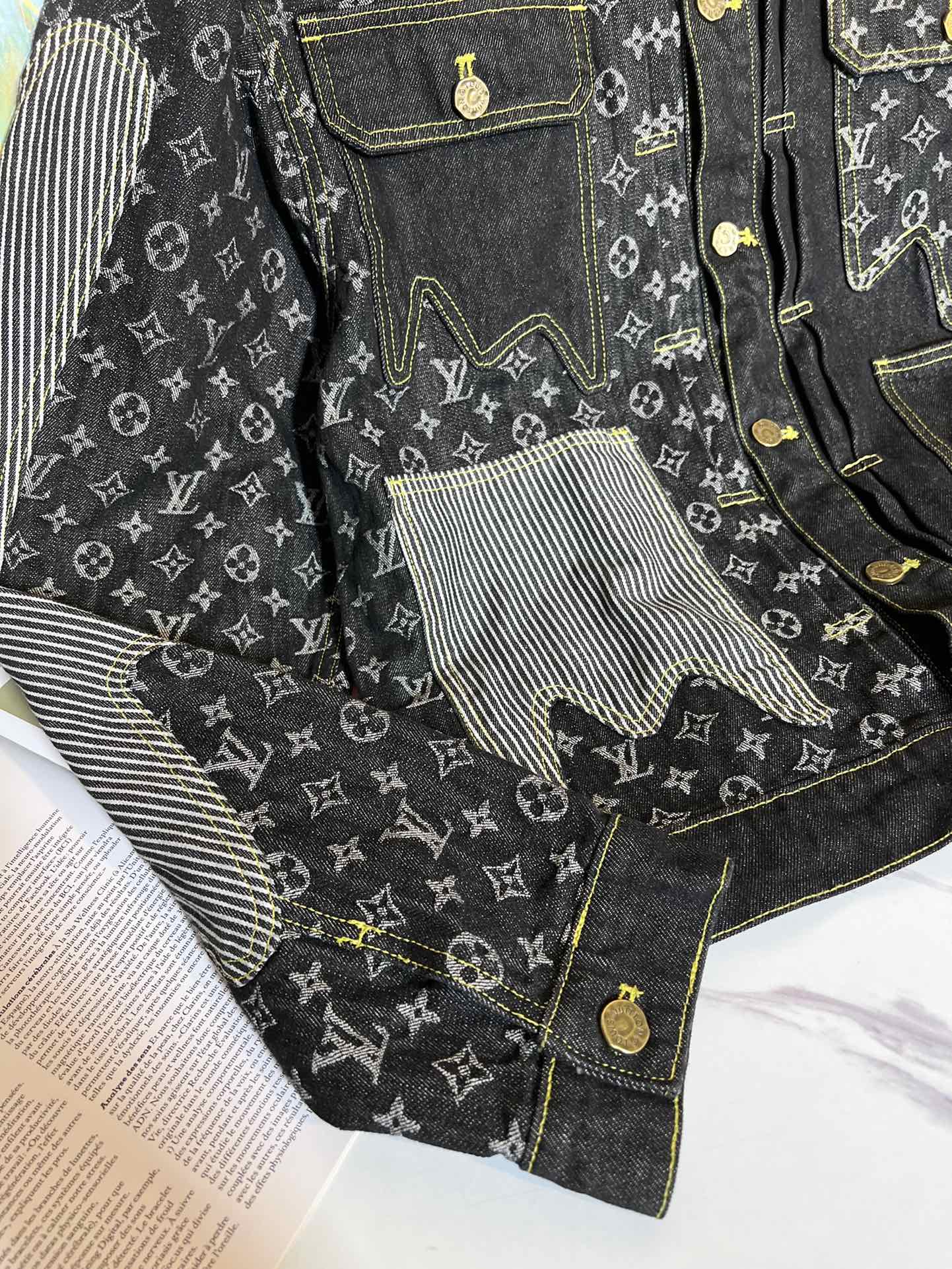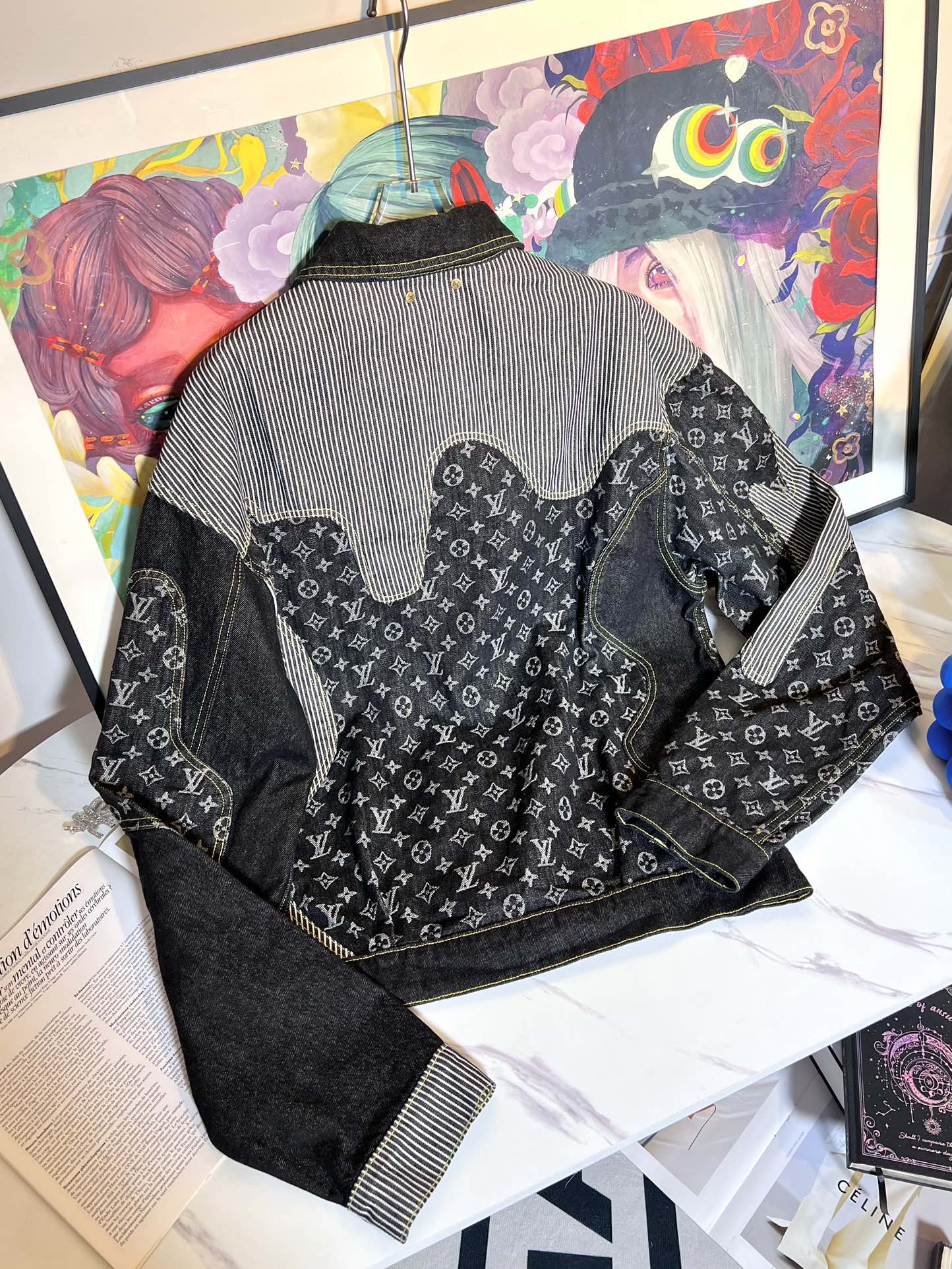 This tooling jacket is designed in wavy detail and decorated with a collision denim veneer with a fu