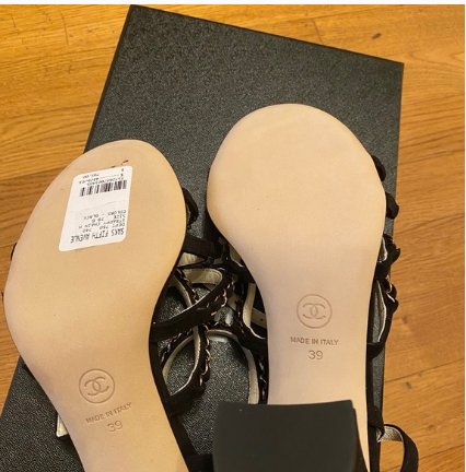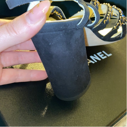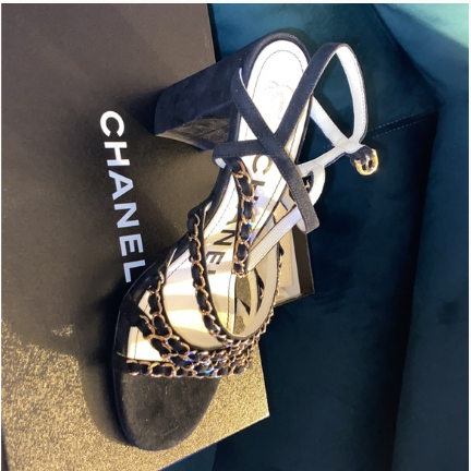 Chanel Black New Kid Suede 19p Strappy Chain Heels
