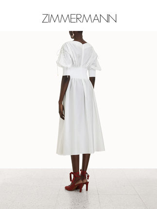 Brand: Zimmermann applicable age: 25-29 years old size: 0P 130 2 style: Commuter: lady color classification: cream white sleeve type: Bubble sleeve Item: 3678DRHMMLK Year season: 2022 Summer Sleeve length: Short sleeve skirt length: Midskirt material composition: Cotton 75% mulberry silk 25%