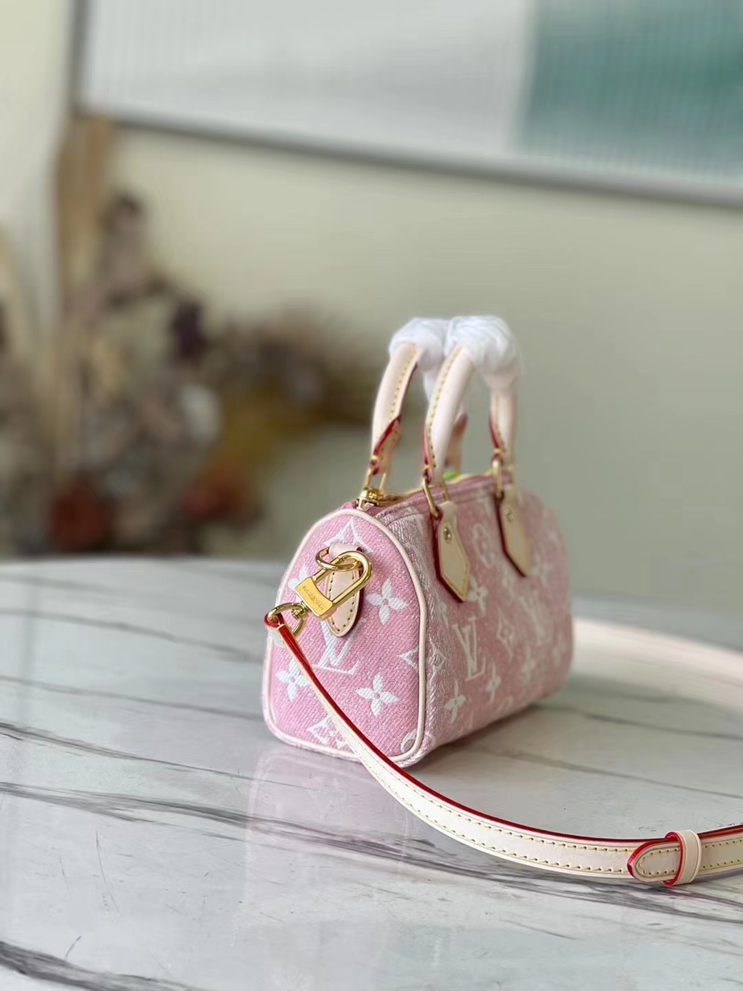 Nano Speedy handbag is the exquisite interpretation of classic Speedy handbag, which is made from Monogram jacquard tannin cloth.