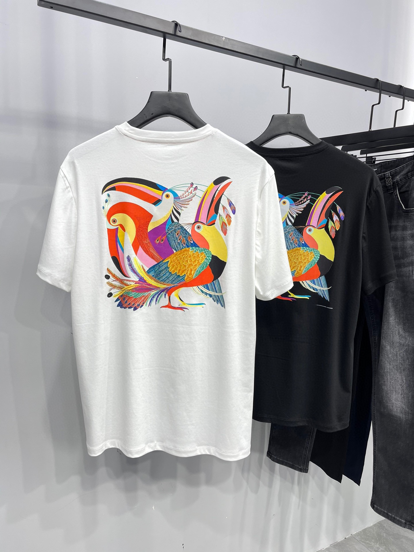 Made of imported 100% pure cotton, the fabric has excellent skin-friendly permeability, soft and elastic feel, and the excellent fabric texture is enough to cope with the four seasons of wearing! The body and chest are decorated with orange embroidery H letters, the font is full of three-dimensional high-grade, the back is printed with a large rainbow toucan, and the sense of detail and high-grade arises spontaneously. The low-key yet luxurious design is very tasteful and stylish! The basic round neck cut, with simple and versatile black and white solid color design, is the best assistant for daily commuting!
