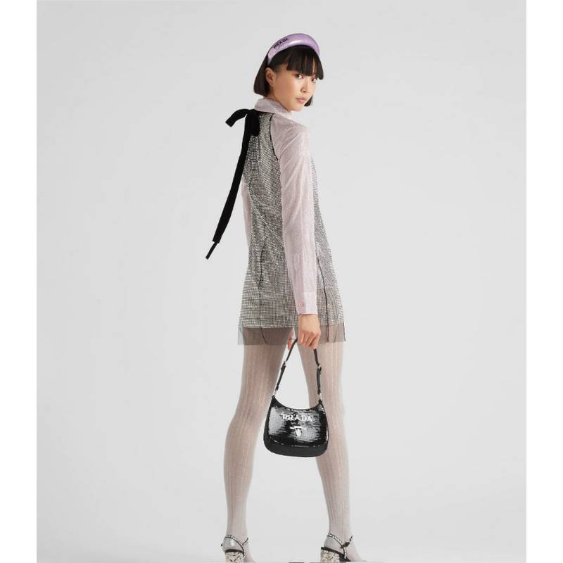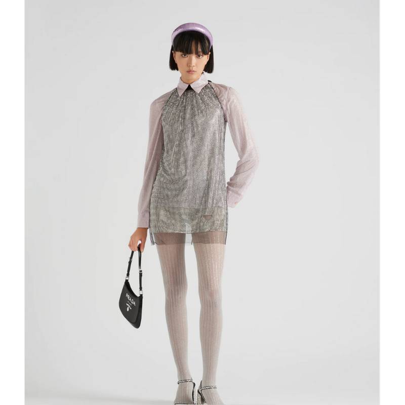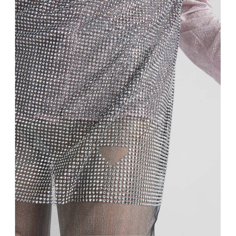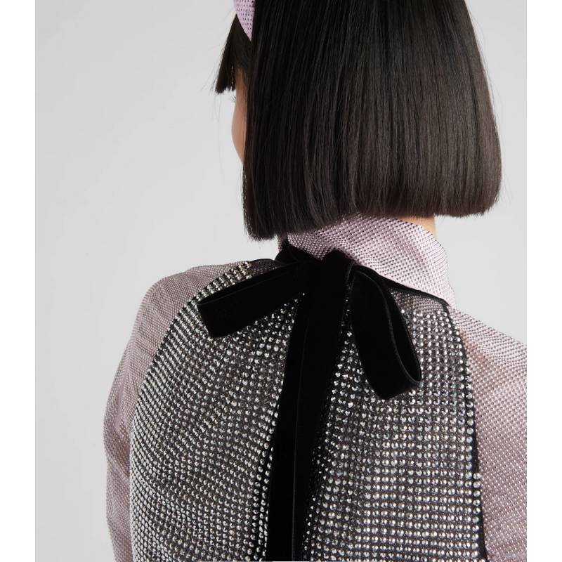 This A-line dress features an A-line hem and crystals. A sleeveless design and a delicate scarf-style collar define the style. This piece is part of a ready-to-wear collection that celebrates rich details and sparkles.