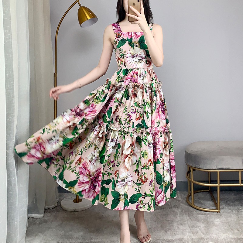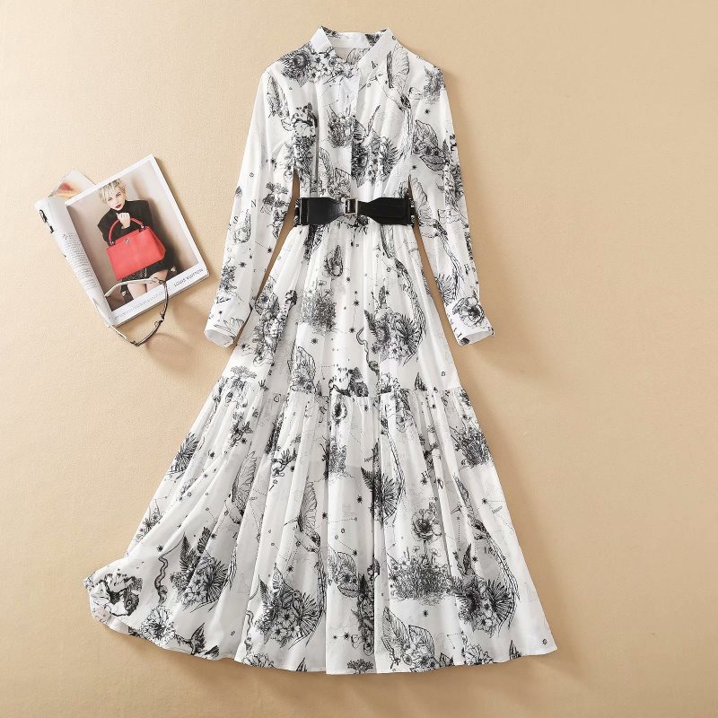 European station spring dress is thin skirt 2022 new female European and American big brand fashion temperament large swing printed skirt