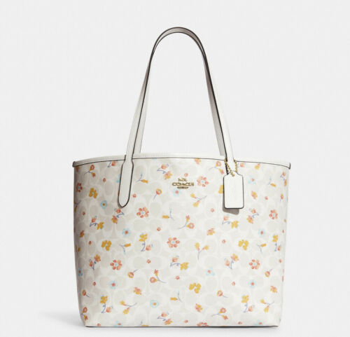 COACH City Tote In Signature Canvas With Mystical Floral Print Chalk White Multi
