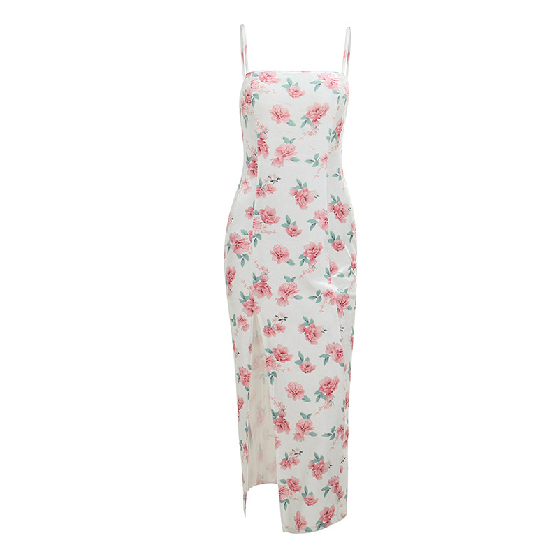 Applicable Age: 18-24 years old size: S M L Fabric: other patterns: Color style: Street collar: one-word collar waist: high waist skirt Front: pullover color classification: pink sleeve type: conventional combination form: single skirt type: A-line skirt applicable season: Summer Year season: 2022 Summer Sleeve length: Sleeveless skirt length: Long skirt popular elements/technology: binding printing style: sling profile: H Profile Composition: Polyester fiber 100%