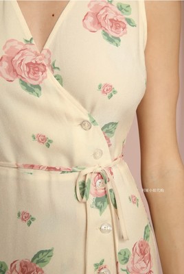 正品Rouje现货GABINA22新款欧美时尚裹身中长裙印花V领无袖连衣裙