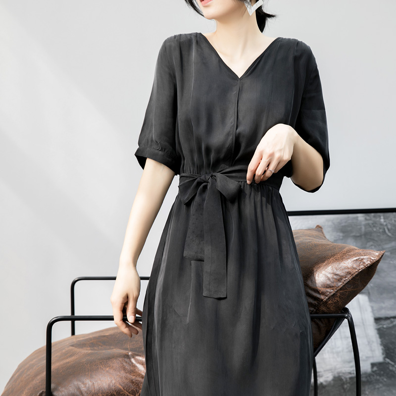 house of cb autumn European and American niche retro satin flared sleeve sexy pleated dress bag hip skirt