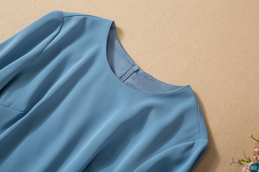 Size: S M L XL Fabric: Other styles: Commuter: Korean Collar: Round collar waist: Mid-waist skirt Front: zipper Color classification: Sparrow blue Sleeve Type: Regular Combination form: single Piece Applicable season: Summer Year season: 2022 Summer Sleeve length: cuff length: MIDI skirt