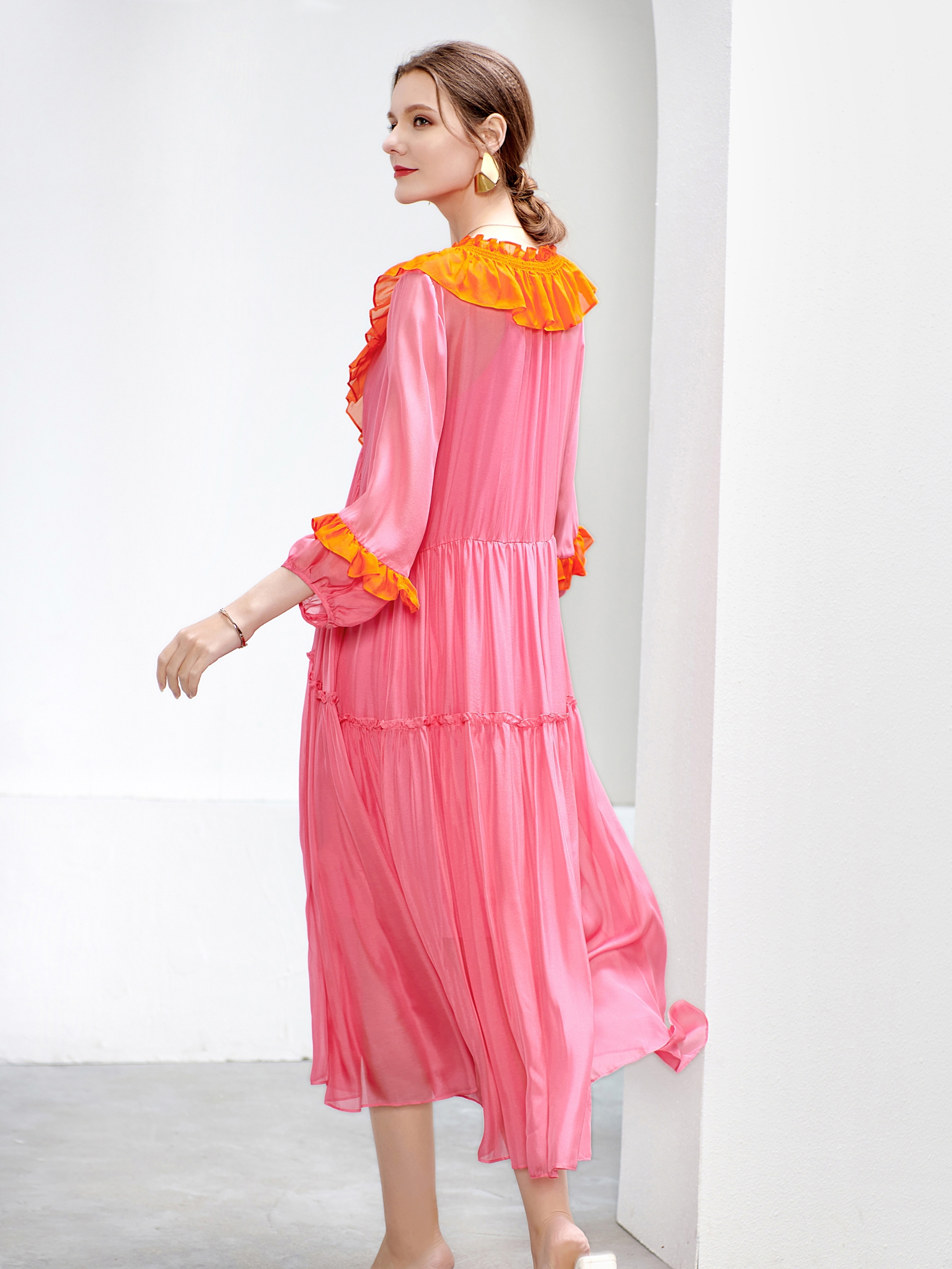 European and American fashion brands high-end silk dress medium length silkworm silk long skirt loose skirt thin A-line skirt
