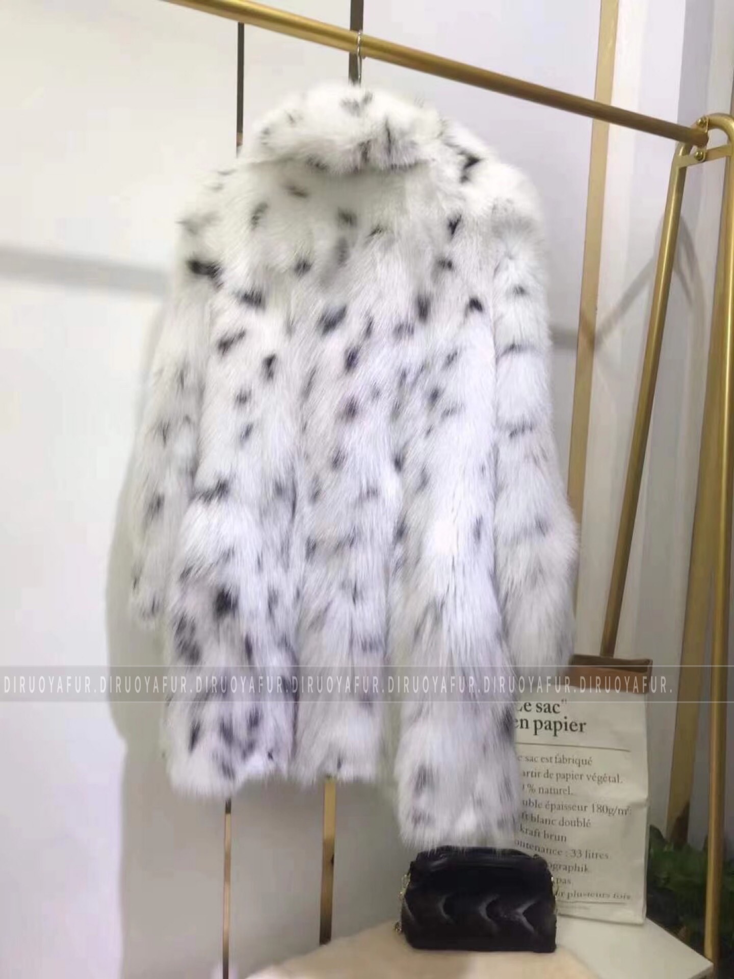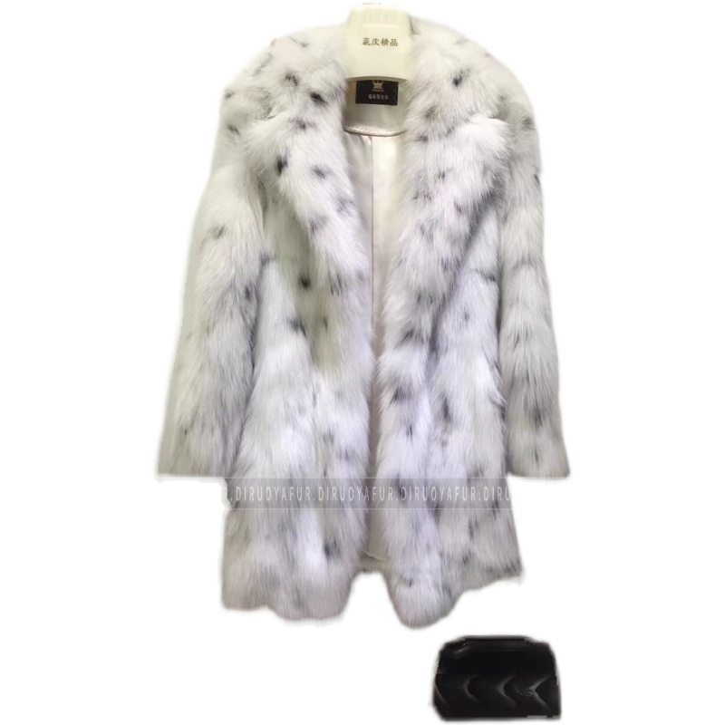 2022 European and American catwalk show imported fox white belly fur lapel leopard print bobcat medium long coat fur coat female