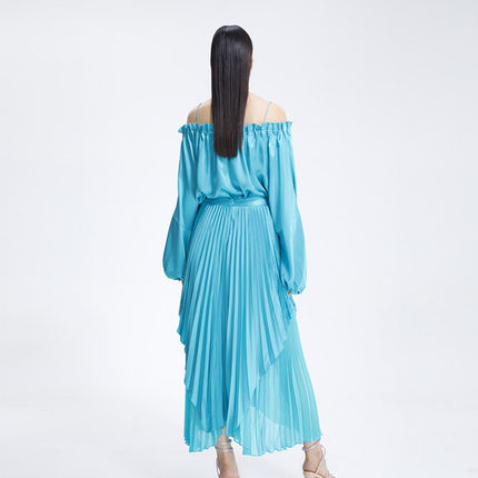 Age: 25-29 years old Size: S M L Pattern: Other /other style: Original design Collar type: One-word collar front: Other color classification: Yellow top Blue top Yellow skirt Blue skirt Item: 6459 Year Season: summer 2022 Sleeve length: Long sleeve length: Conventional clothing version: loose sales channel type: shopping mall with the same style (online and offline sales) Material composition: mulberry silk 100%