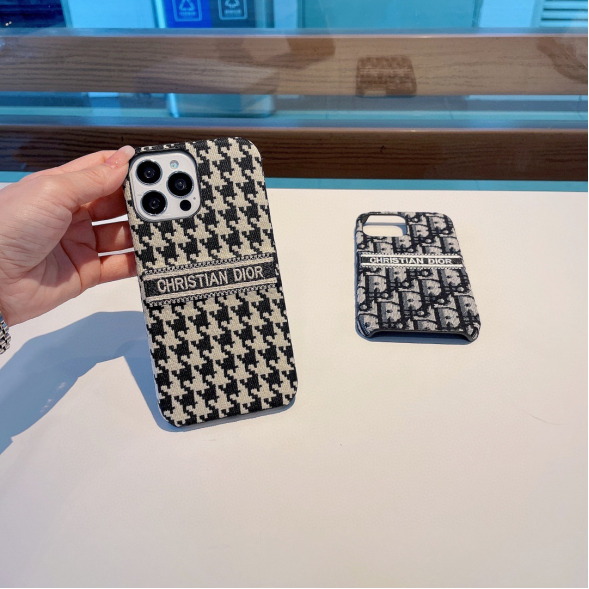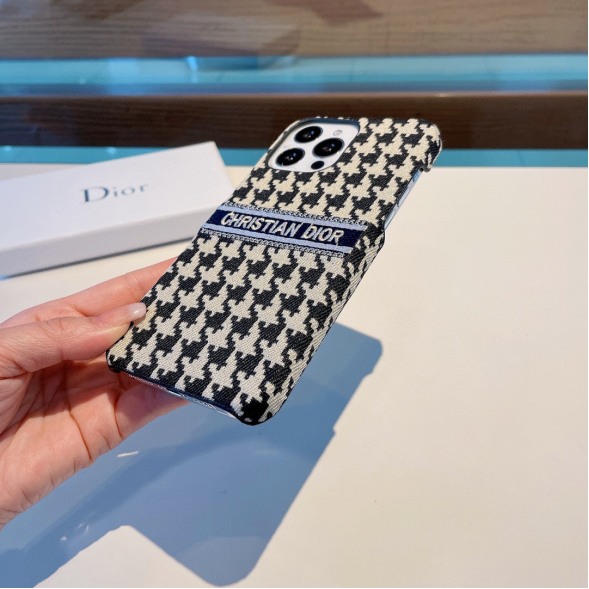 Dior houndstooth embroidery fabric mobile phone case, elegant atmosphere.