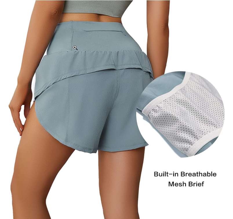 Double deck: These women's shorts feature a soft, breathable mesh lining that provides elastic support and protective coverage, while the outer side splits provide breathability and a wider range of motion; Makes it a great running shorts.