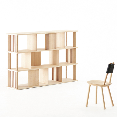 Bookshelf, log, white oak, store shelf, Nordic Japanese design display shelf