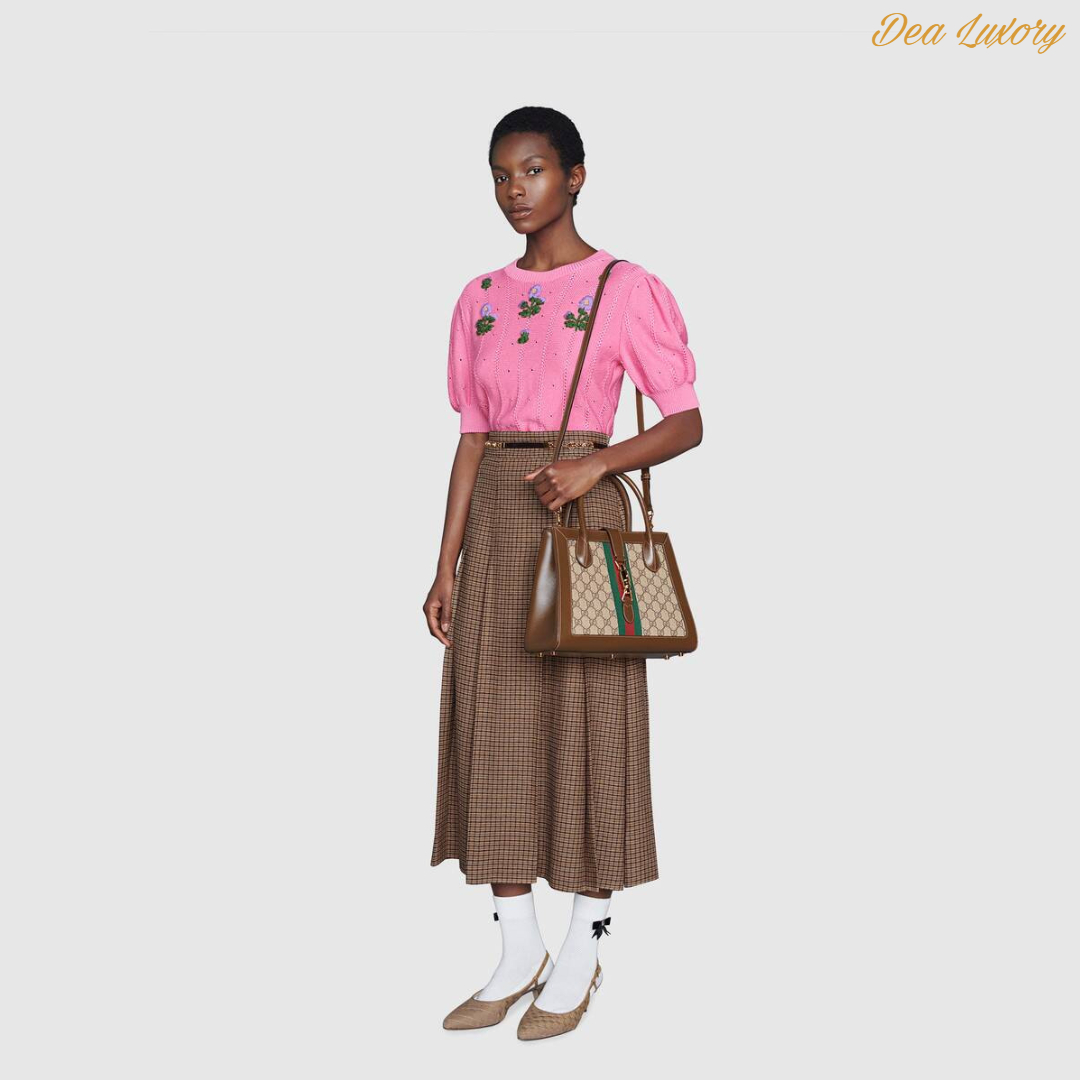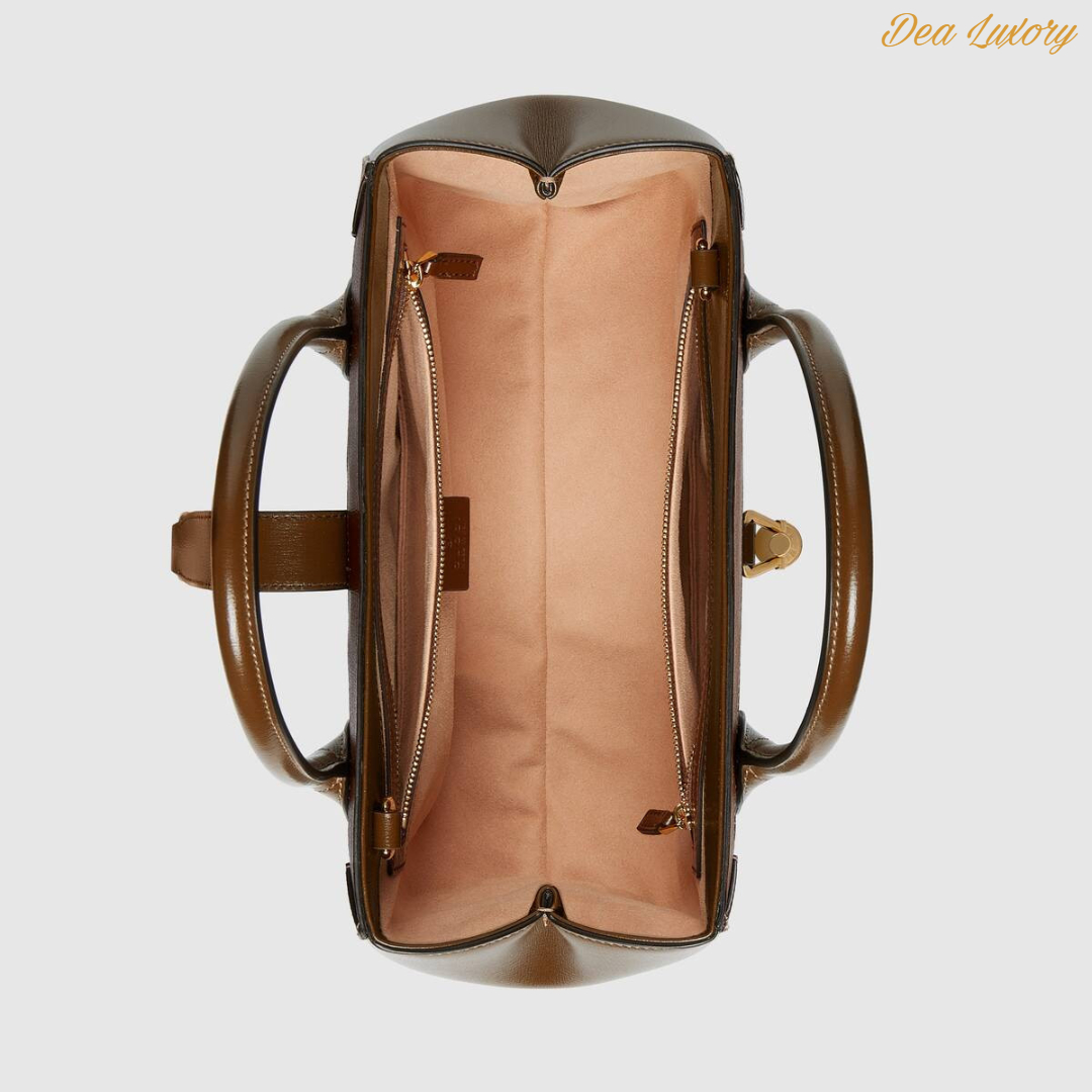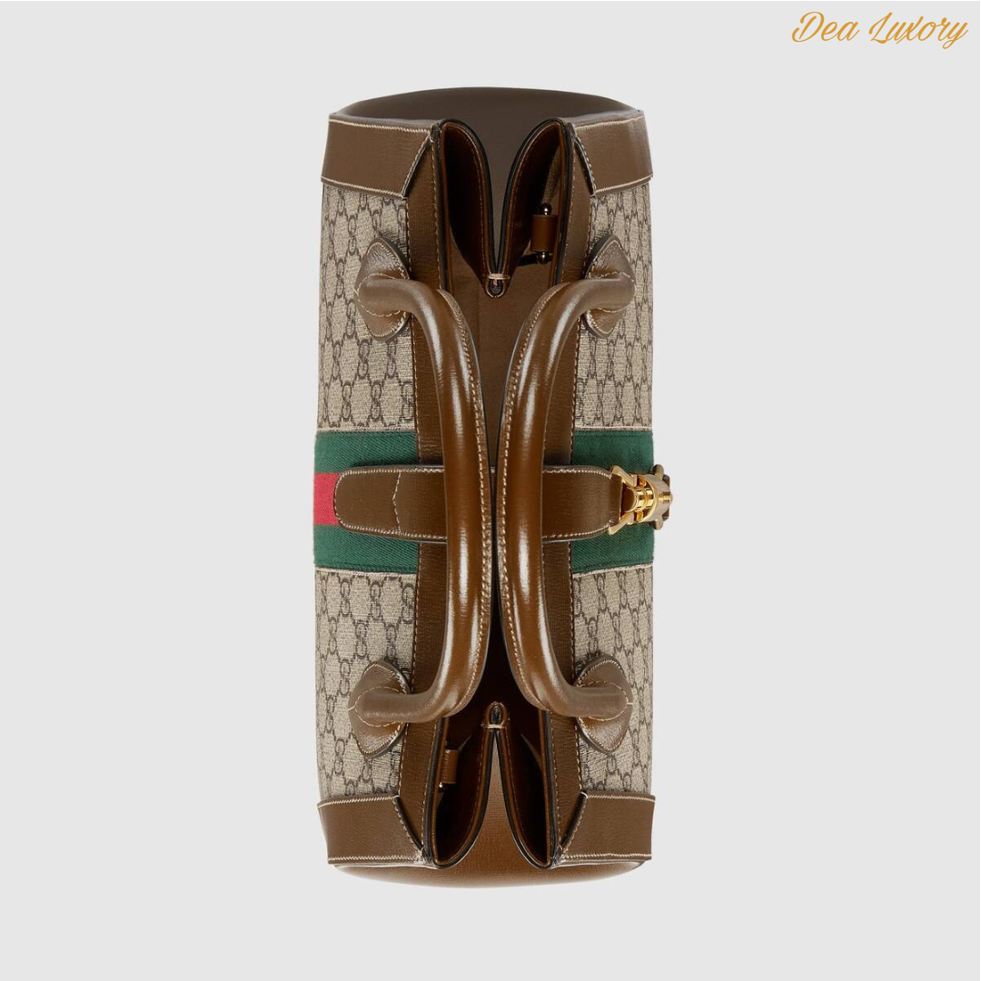 Beige and ebony GG Supreme canvas, environmentally friendly material, with brown leather rolling edge.