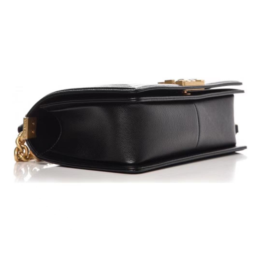 Chanel Le Boy series gold buckle diamond lattice flip one-shoulder bag oblique satchel granule embossed calfskin women's medium size black classic must enter
