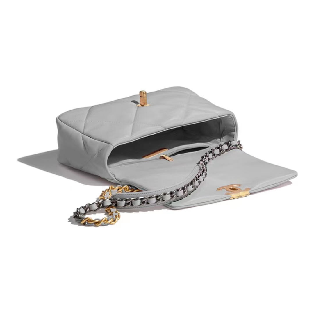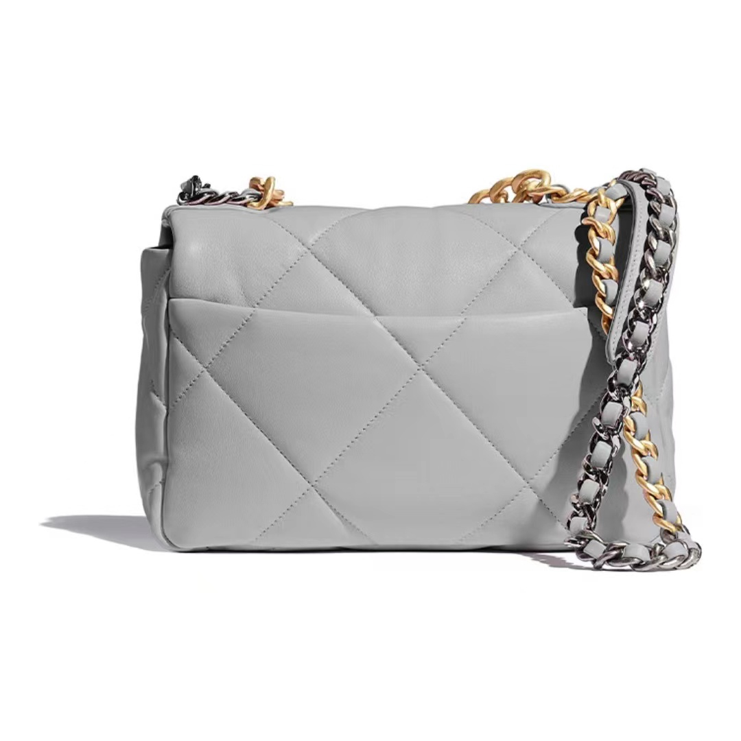 Chanel 19 bag series lambskin with metal gold buckle chain oblique shoulder bag women's small size gray