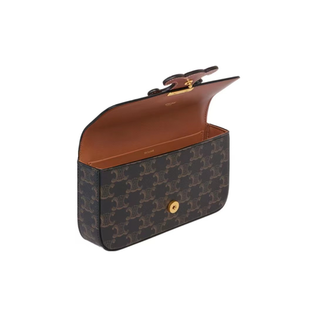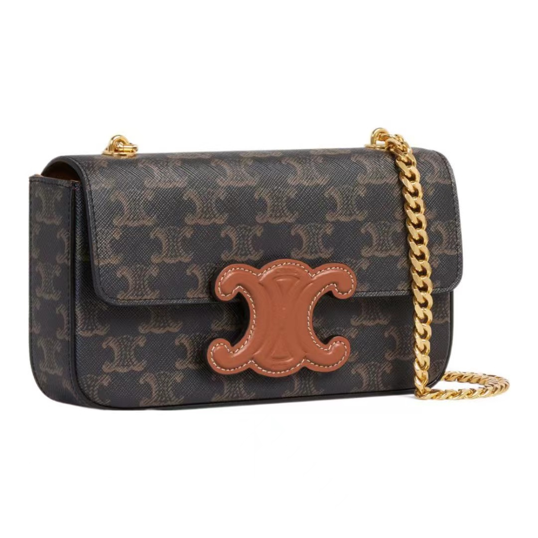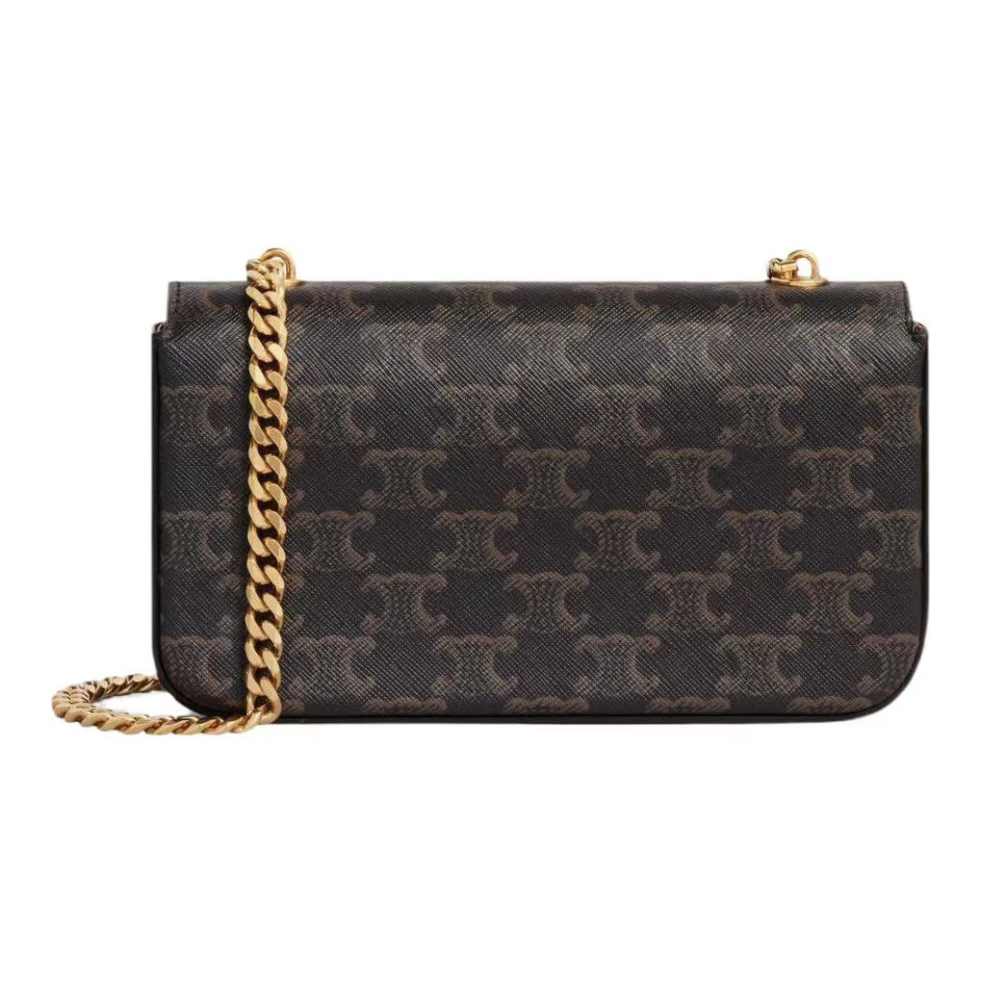 CELINE Triomphe Arc de Triomphe big lock presbyopia full of metal chain cowhide underarm bag one shoulder bag women's yellow brown