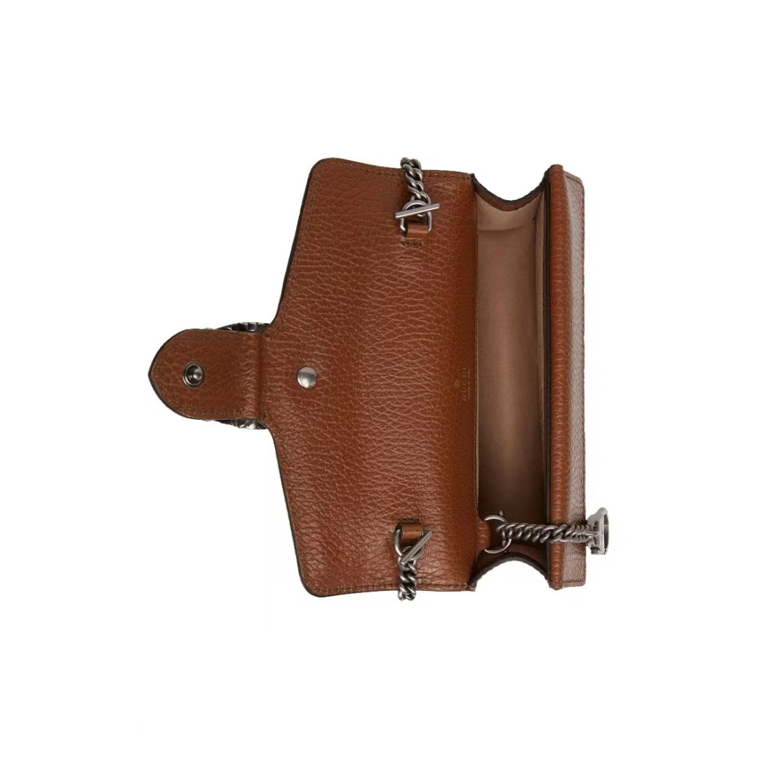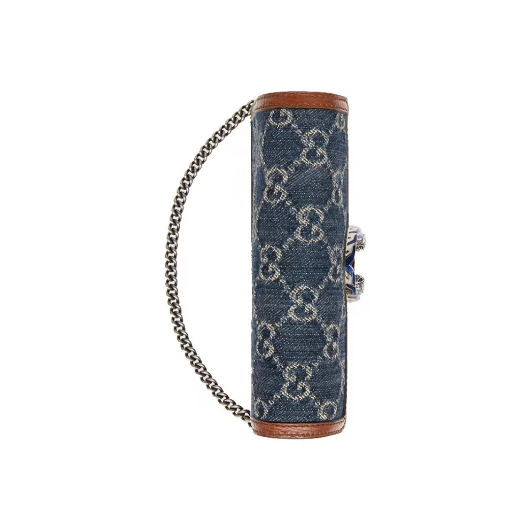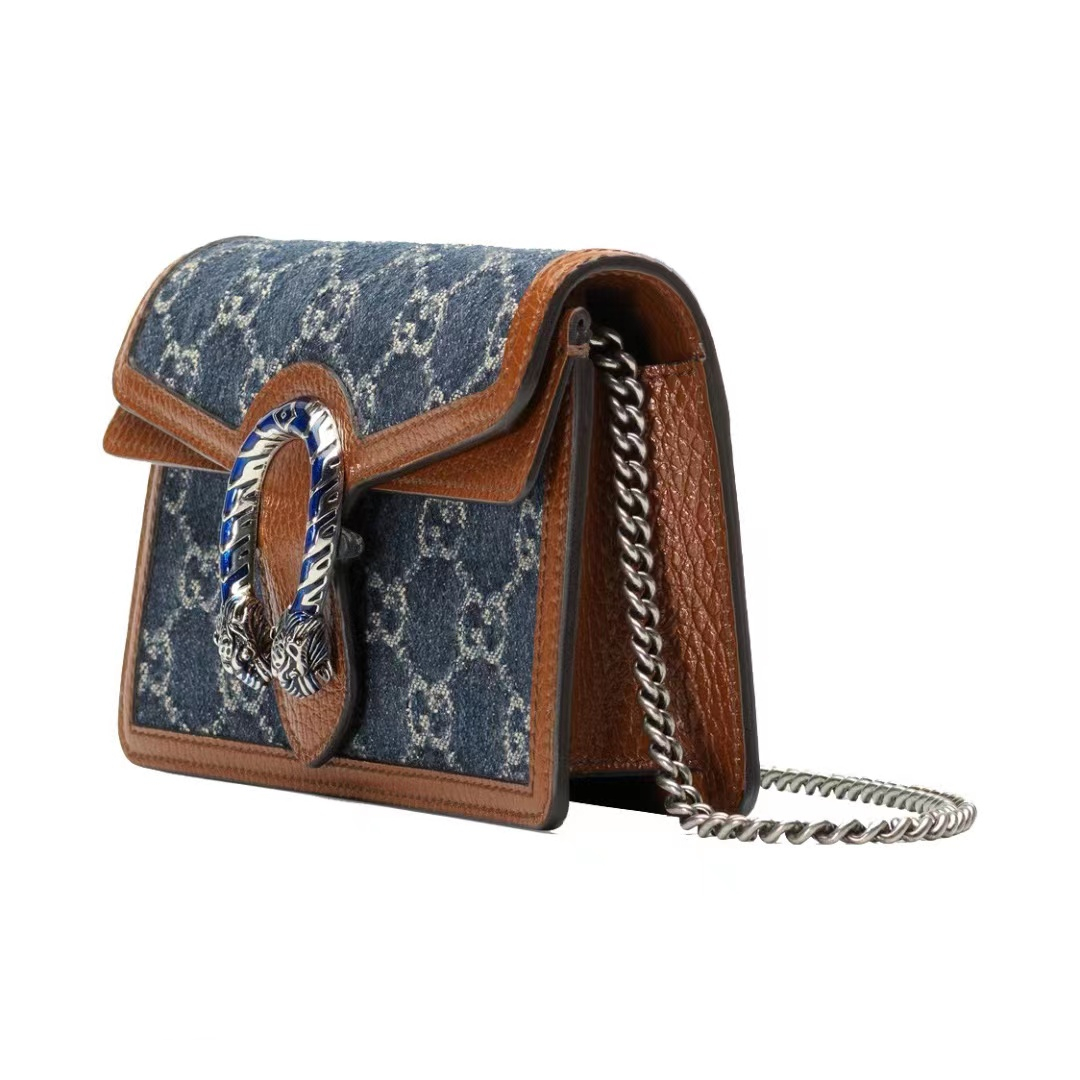 Gucci Dionysus wine god tiger head buckle presbyopia Logo denim leather chain one-shoulder shoulder satchel super mini women's grayish blue / brown
