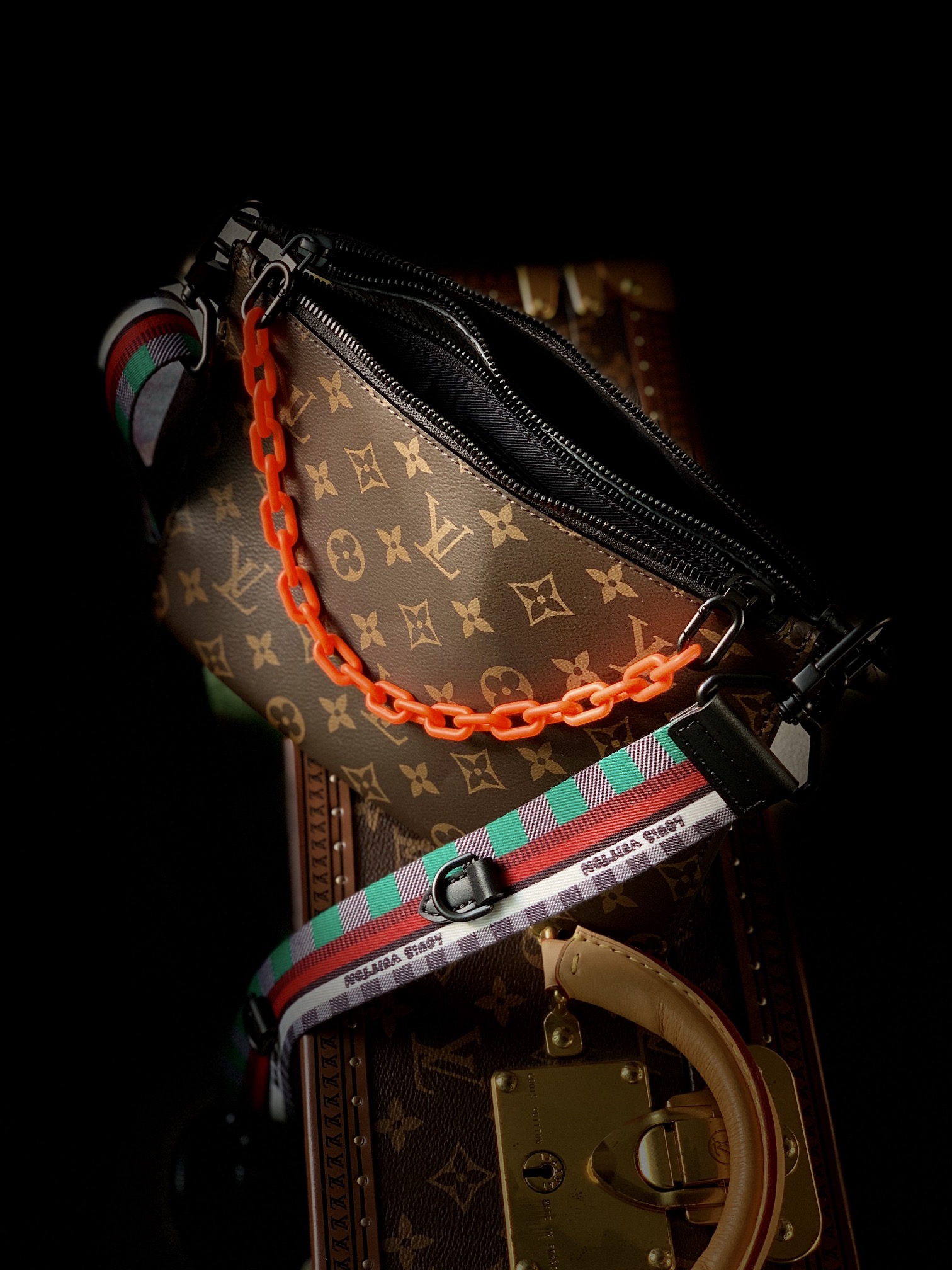 Classic monogram canvas is combined with taurillon monogram leather, and the chain is infused with striking colors. Compartment, detachable round storage bag and jacquard shoulder strap add functional details. The occasion is suitable for day and night. Dimensions: 25.0 x 17.0 x 1.5 (length x height x width)