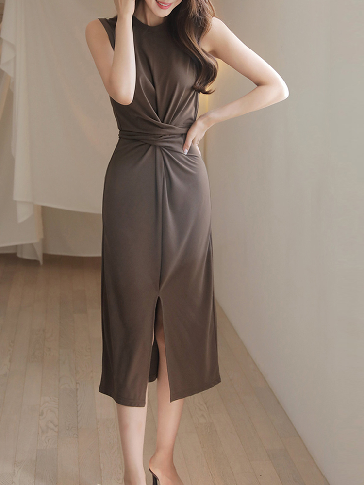 Applicable age: 25-29 years old size: S M L XL Fabric: other design: solid color style: Commuter: Korean collar: round collar waist: high waist garment front: pullover color classification: black khaki sleeve type: Conventional combination form: single item No. : 190616068 Skirt Type: Irregular skirt applicable season: Summer Year Season: summer 2022 Sleeve Length: Sleeveless skirt Length: Long skirt Style: Other /other Profile: H Profile Composition: Modal fiber (Modal)50% cotton 46%