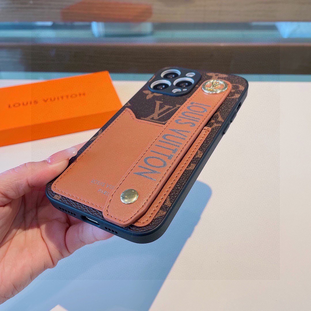 Classic LV presbyopic phone case. Wristband card bag mobile phone case Fine hole pasting hardware. Portable and convenient.