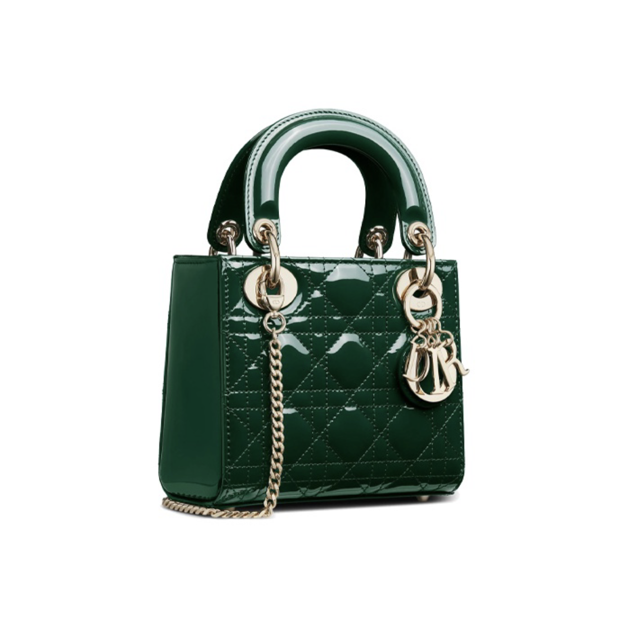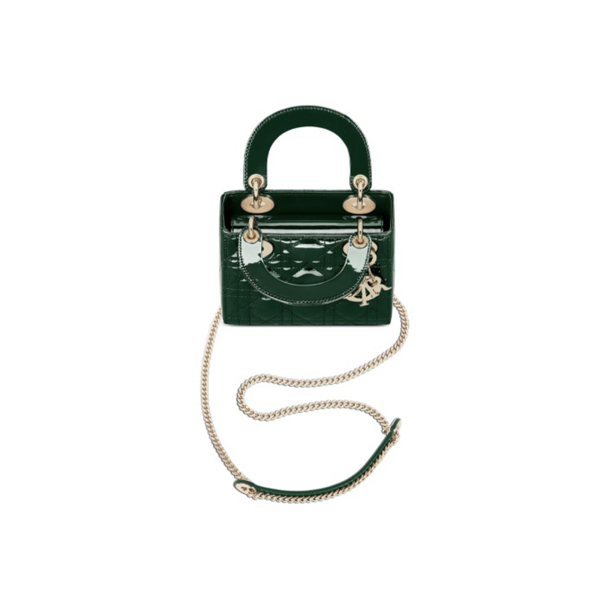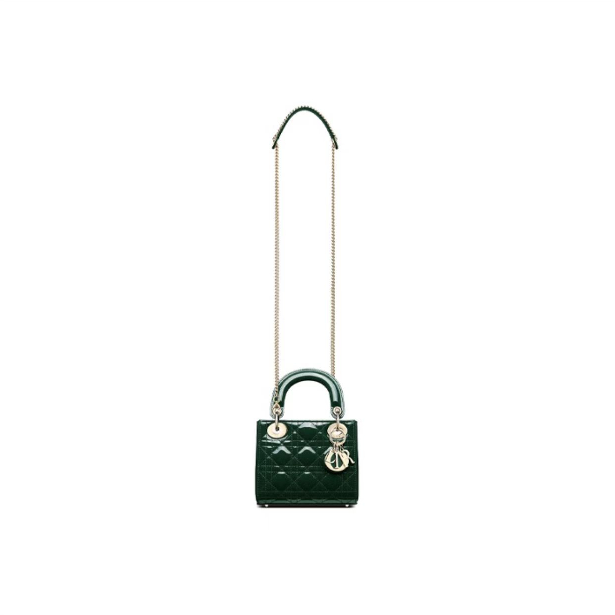 DIOR Lady Dior three-case concubine bag lacquered leather rattan handbag metal chain removable handle single shoulder shoulder satchel mini women's pine green