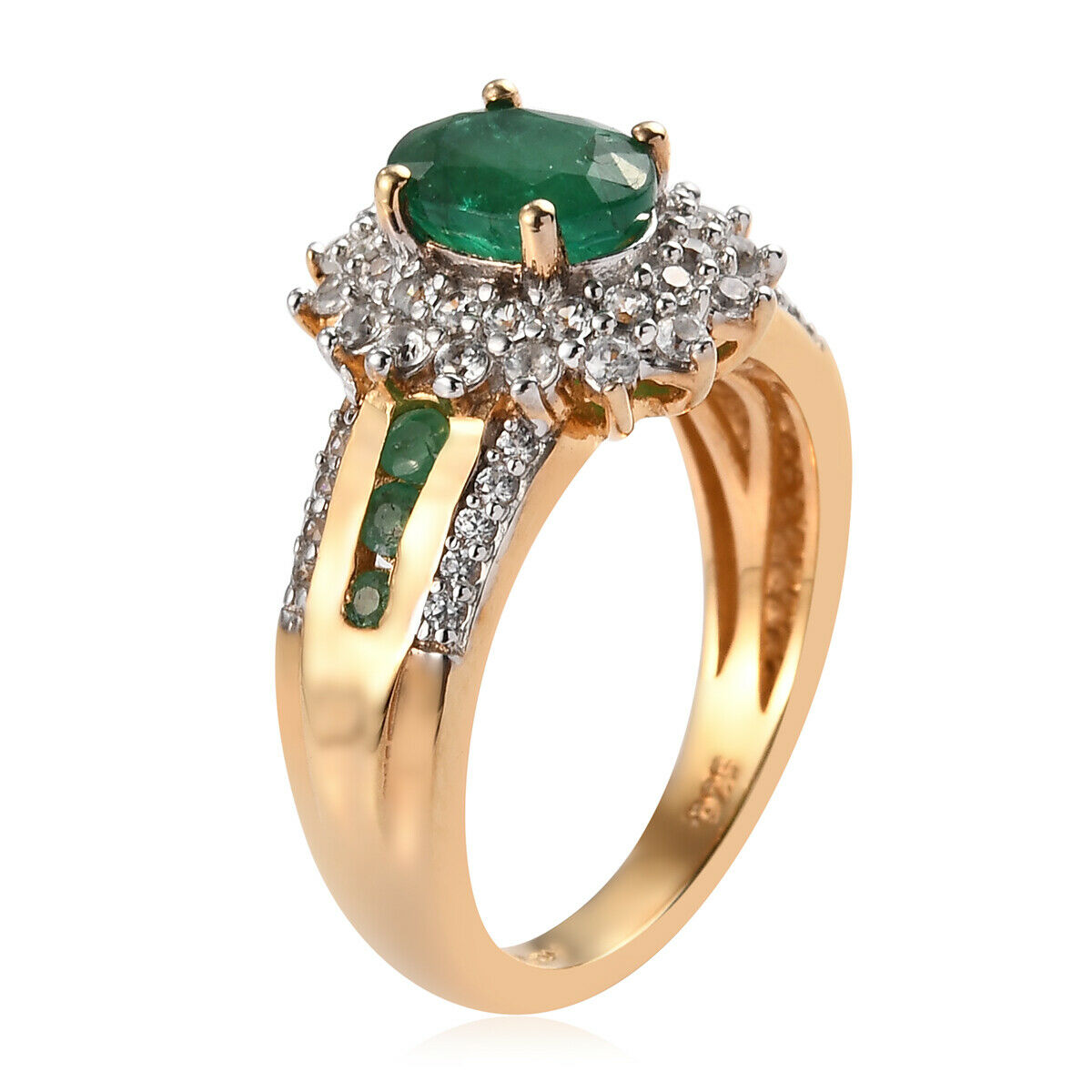Wedding Gifts Women 925 Silver AAA Emerald Sunburst Ring for Prom Size 7 Ct 1.7