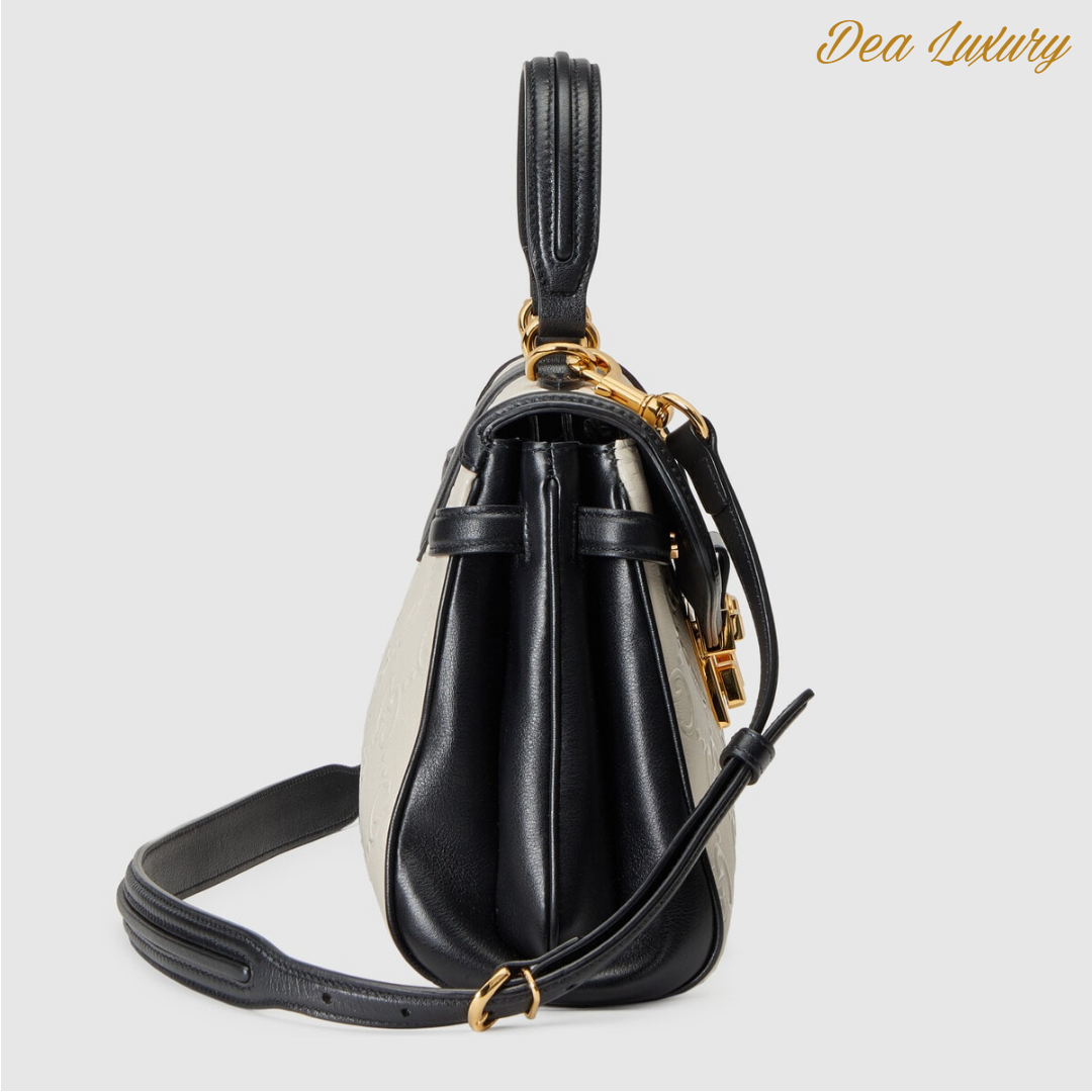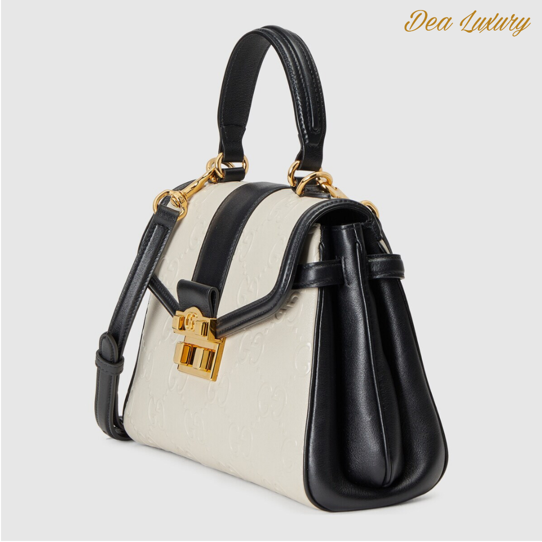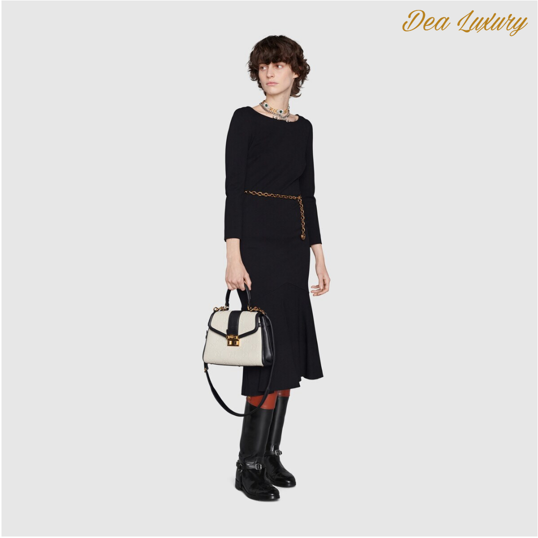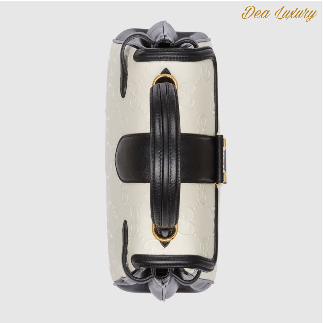 This white leather handbag draws inspiration from the classic Gucci elements of the last century, renovating the brand's meaningful style and design elements.