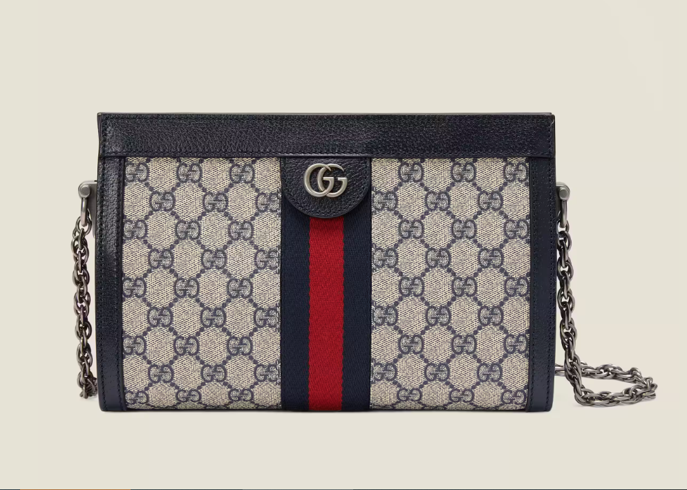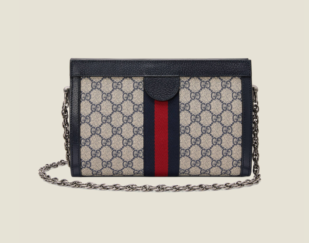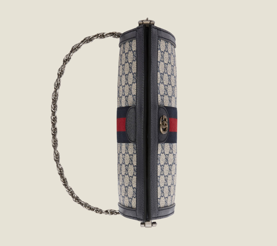Beige and blue GG Supreme canvas Blue leather piping Jinsediao parts Blue ribbon Suede texture superfine fib lining Double g Hand-painted edge Two compartments Open pocket Chain shoulder strap (43cm high) Magnetic buckle Weight: about 0.6kg. Trumpet: 26cm (width) x 17.5 (height) x 8cm (depth)