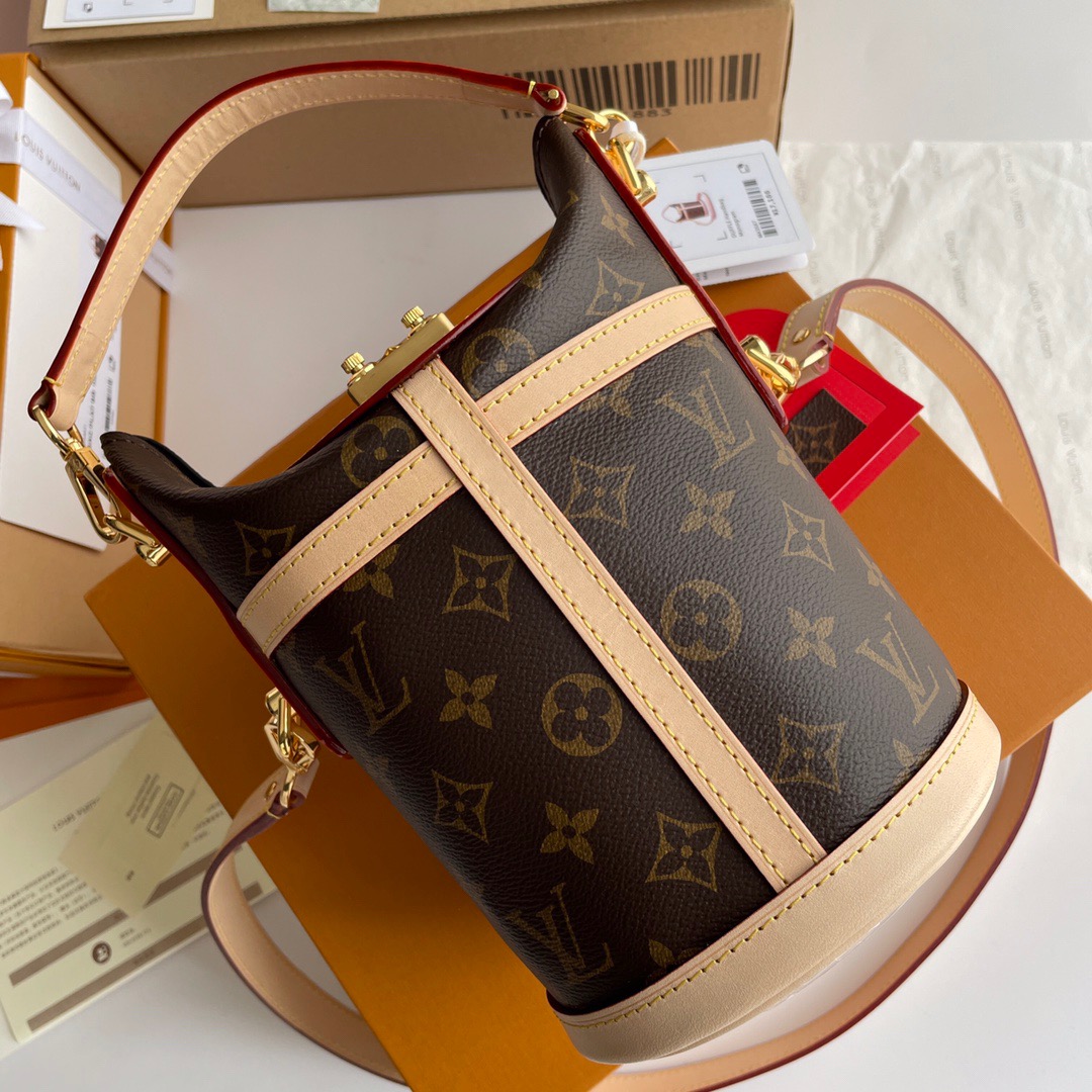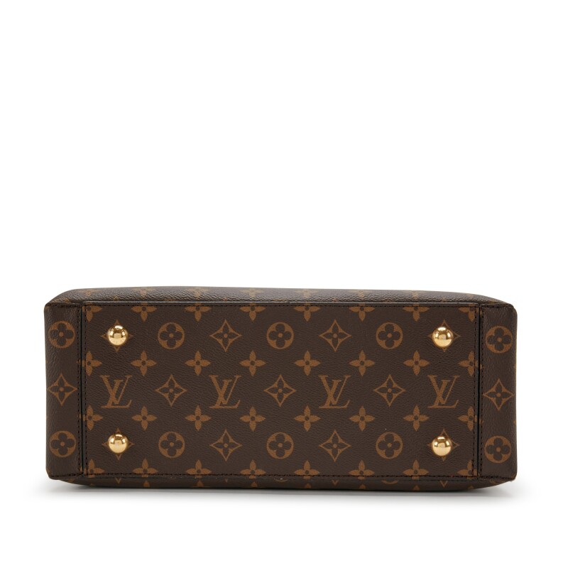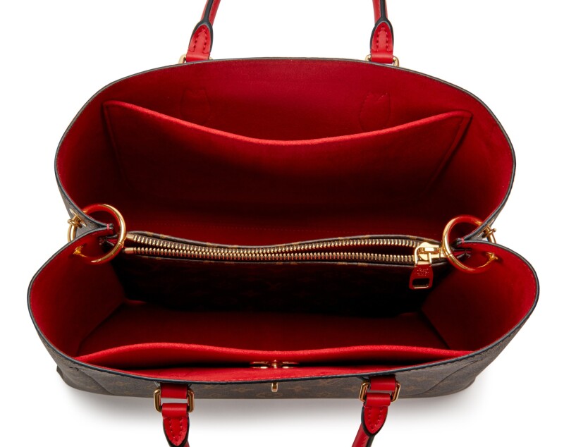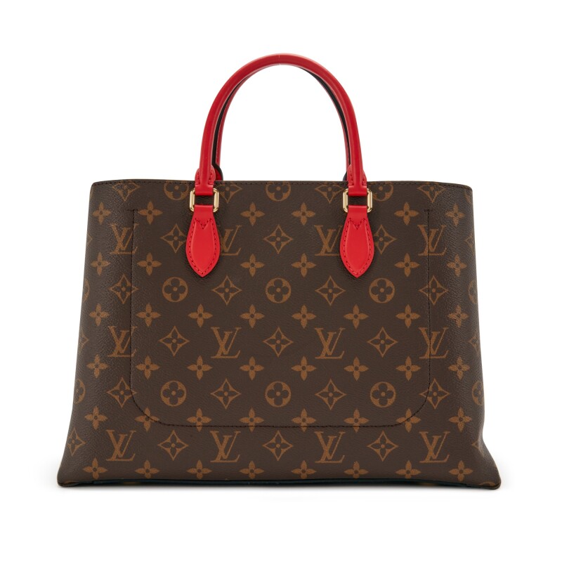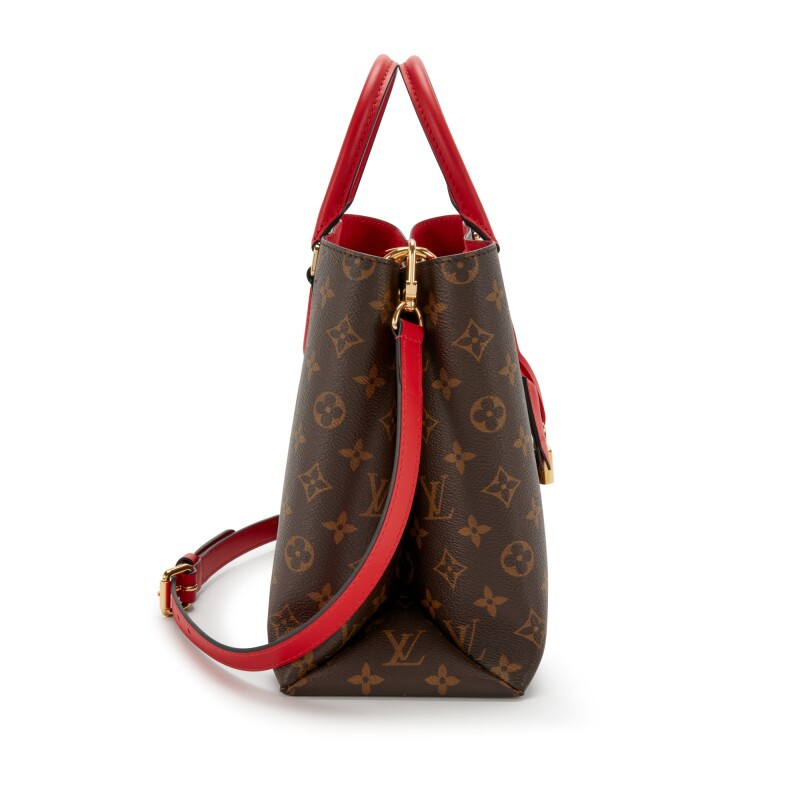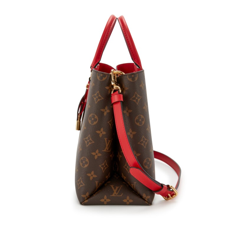 2020 red leather and brown Monogram coated canvas floral handbag gold hardware