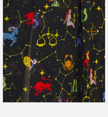This shirt-style dress is decorated with a Dior Pixel Zodiac pattern, which is a new interpretation of the Zodiac symbols for a fascinating and colorful effect.