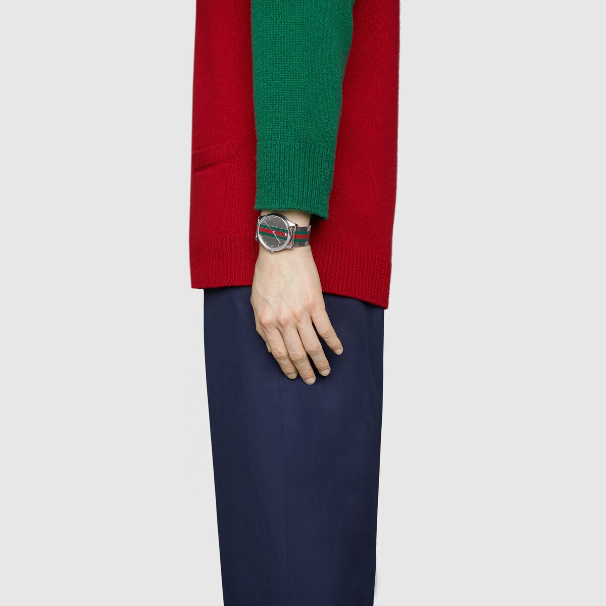 Fine steel case, mesh dial, decorative red and green ribbon fine steel mesh chain