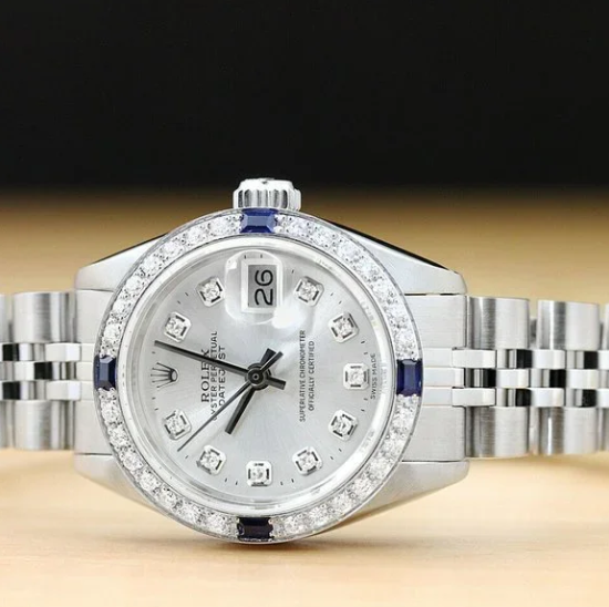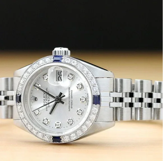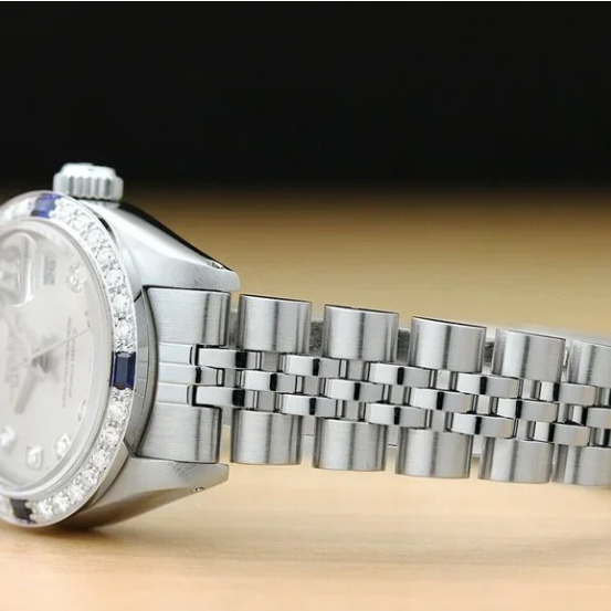 - Watch is in mint condition and just serviced - Comes with wooden gift box - Fits up to 6.5" wrist ( more links can be bought ) - 18k White Gold - Sapphire Crystal - Genuine Rolex case - Watch has custom diamonds added. The bezel is custom and aftermarket. - Custom ss jubilee bracelet - TRULY stunning - Due to customizations you will need to bring to aftermarket watch store for future service