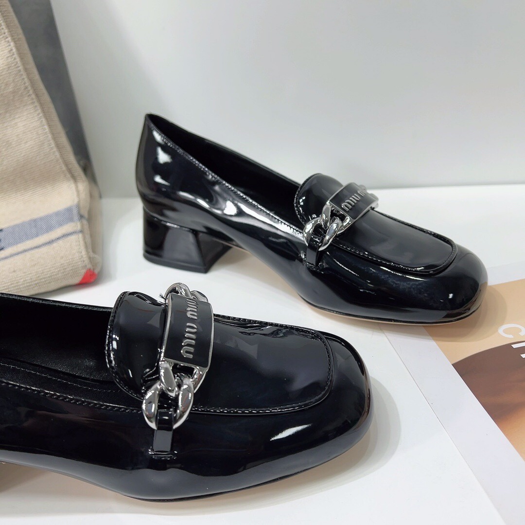 Vamp customized imported soft cow lacquered leather, inner foot sheepskin! Italian original imported leather outsole, 4.5cm rough heel walking without tiredness or pressure! The combination of open-mold silver chain, white pearl, pearl and chain is even brighter.