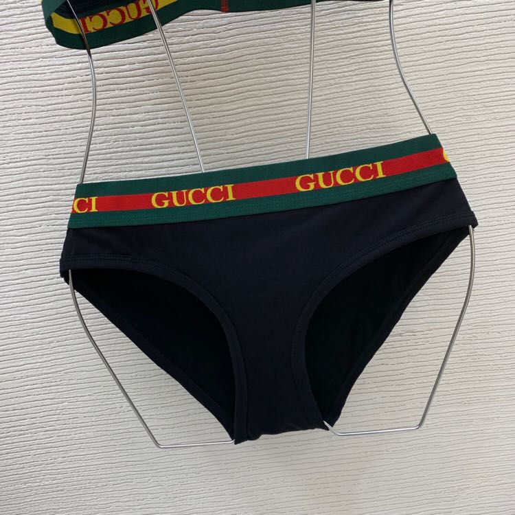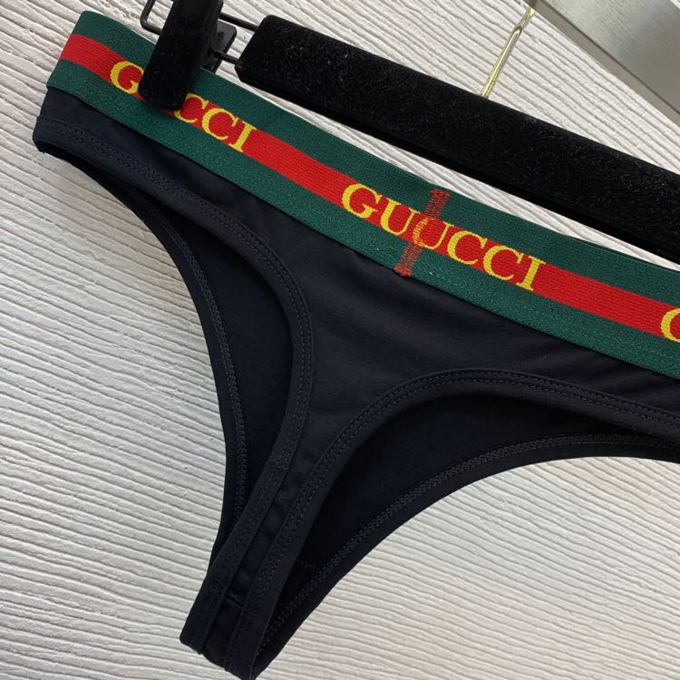 Gucci new custom cotton fabric three sets! Logo ribbon splicing elastic waistcoat (with chest pad) + briefs + THong fashion casual underwear swimsuit