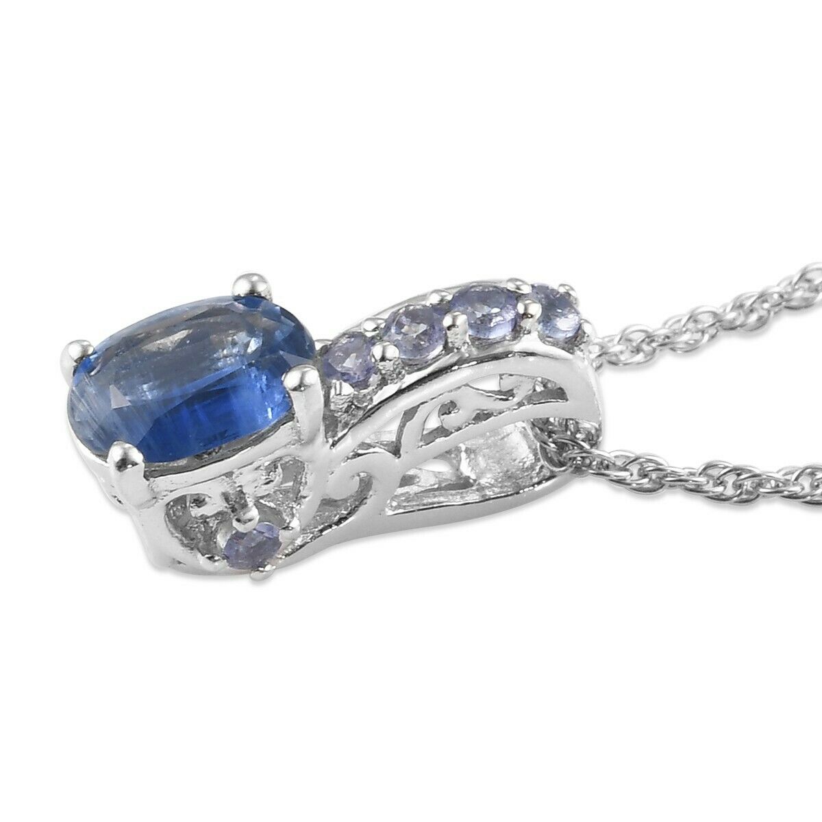 925 Sterling Silver Kyanite Blue Tanzanite Pendant Necklace Gift Size 20" Ct 3.2