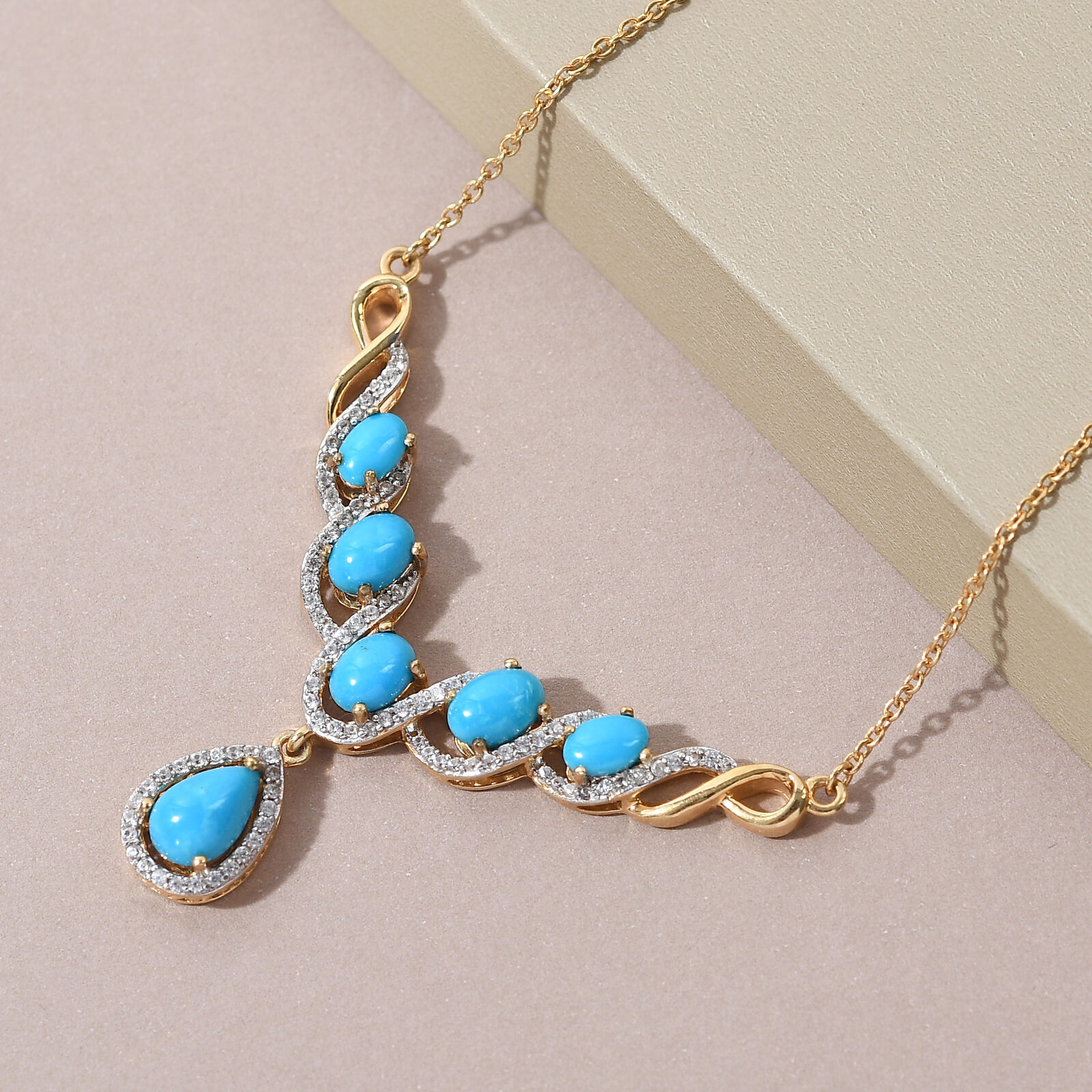925 Sterling Silver 14K Yellow Gold Over Turquoise Necklace Gift Size 18 Ct 5.1