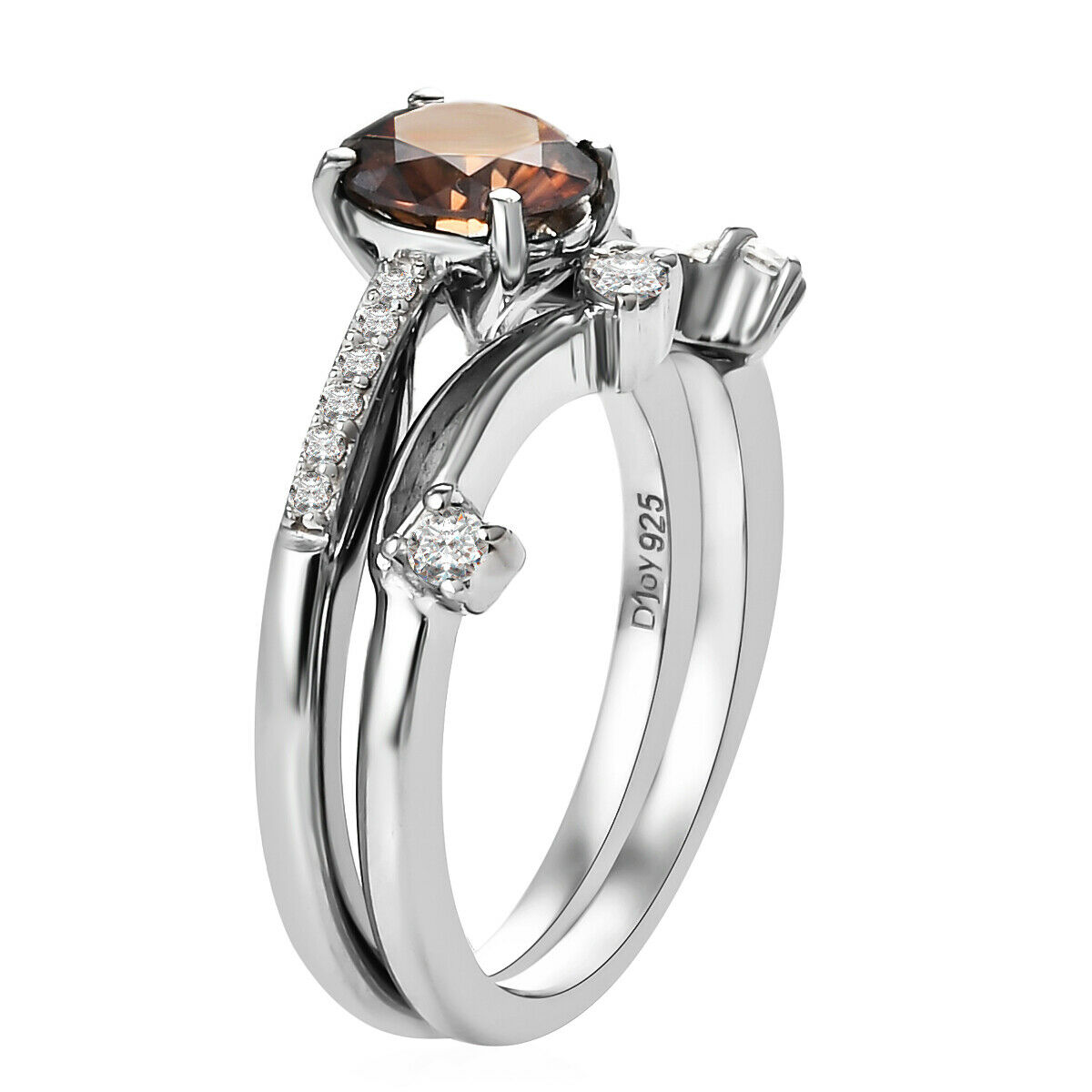 Gifts 925 Sterling Silver Platinum Over Moissanite Set of 2 Ring Ct 1.1