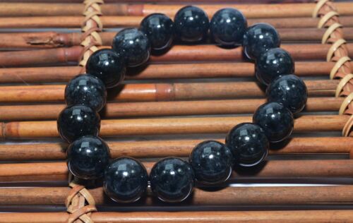 Certified Black Natural A JADE Jadeite Bead Bangle Bracelet 12 mm