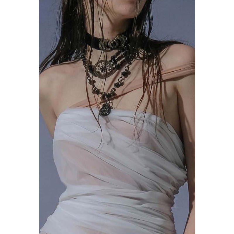 Xiangqiao Sheng Venus wet body tube top skirt niche high-end solid color temperament dress women