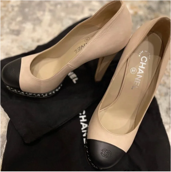 hanel leather pumps (2 Available) Chain link detail Color: beige and black options Size: 8.5 Condition: excellent