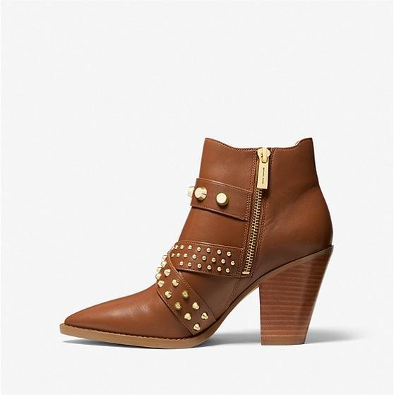 Our Astor stud hardware adds a modern-luxe attitude to the Western-inspired Dover. Set on a stacked wooden heel, this sleek leather boot has a pointed toe and buckled straps that add to the glamorous effect. Wear it with a floral midi skirt, or team it with your favorite pair of jeans.