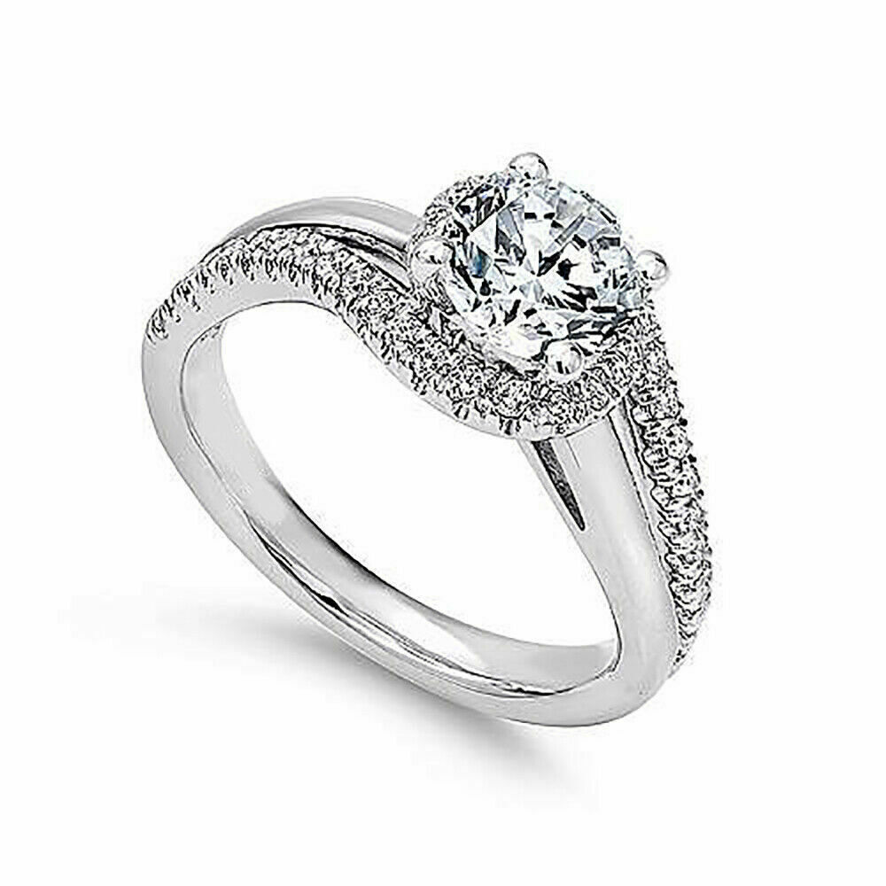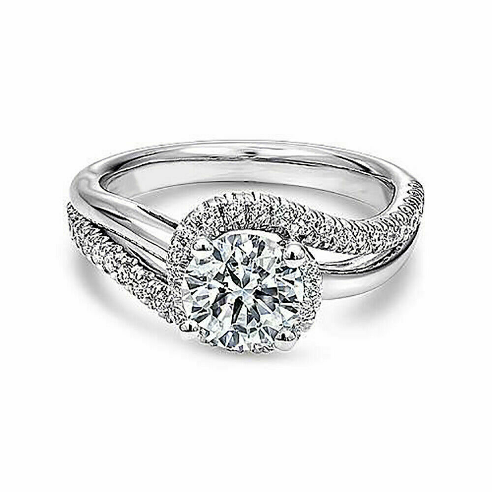 Round Cut 0.90 Ct Real Diamond Engagement Ring Solid 14K White Gold Size 6 7 8 9