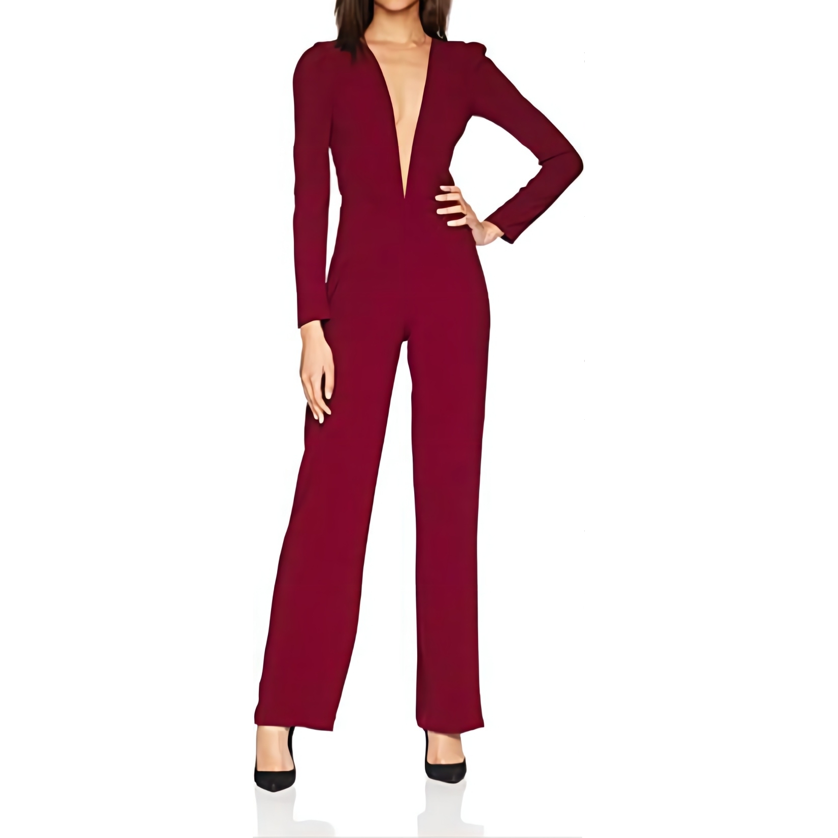 Dress the Population Women's Drew Long Sleeve Plunging Jumpsuit