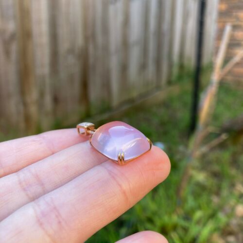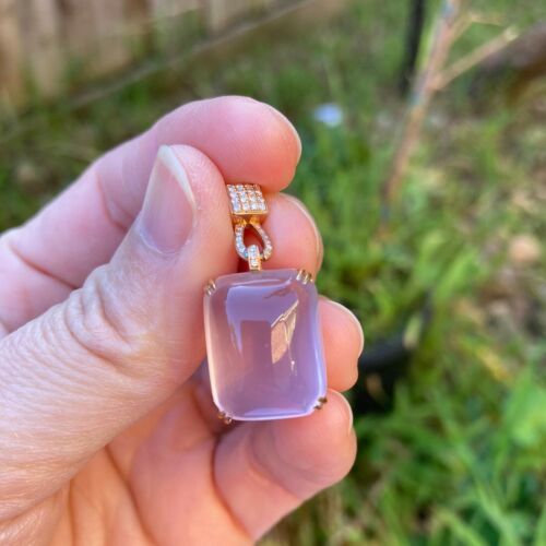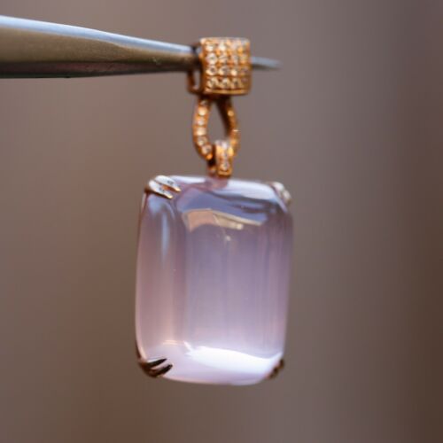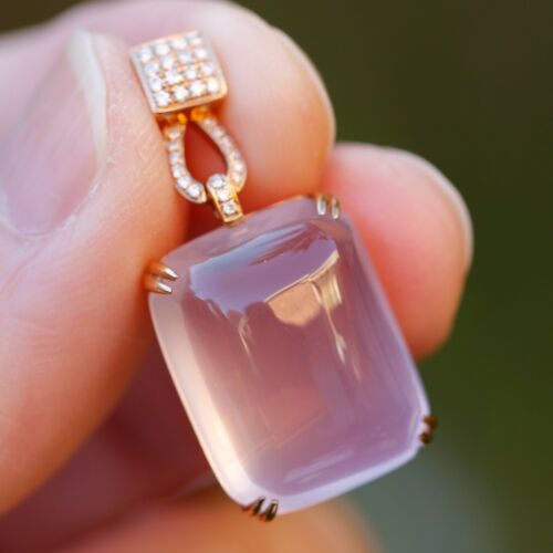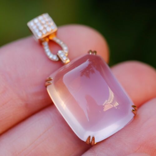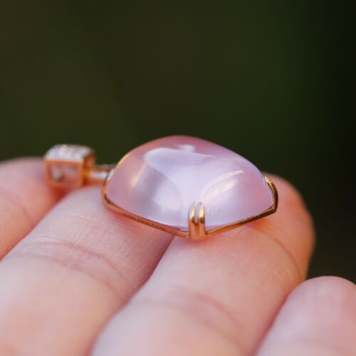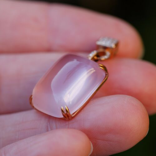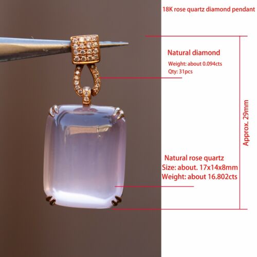 Natural AAAAA Rose quatz W/diamonds 18K rose Gold Pendant KG201
