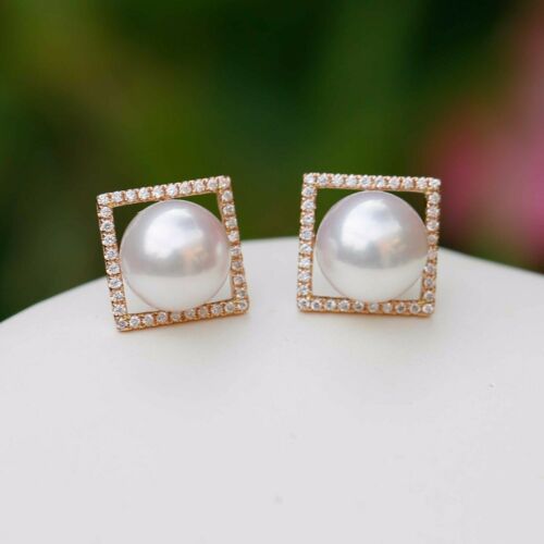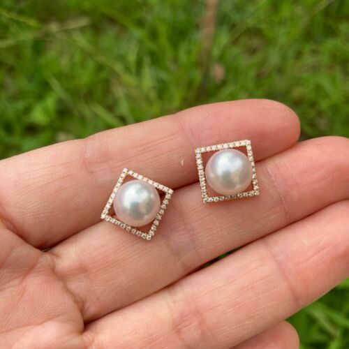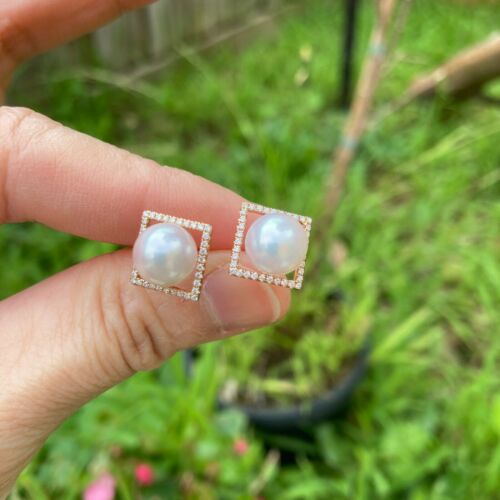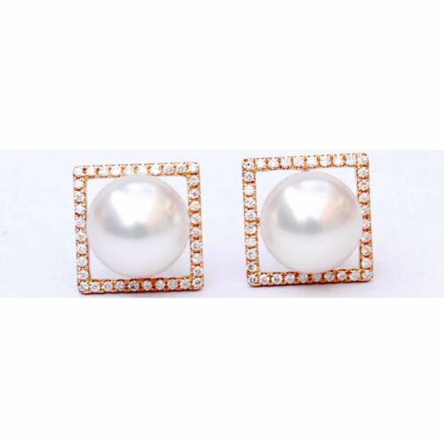 0.288cts Natural Diamond 8.6mm Japan Akoya Pearl 18K Rose Gold Earring/Stud #212